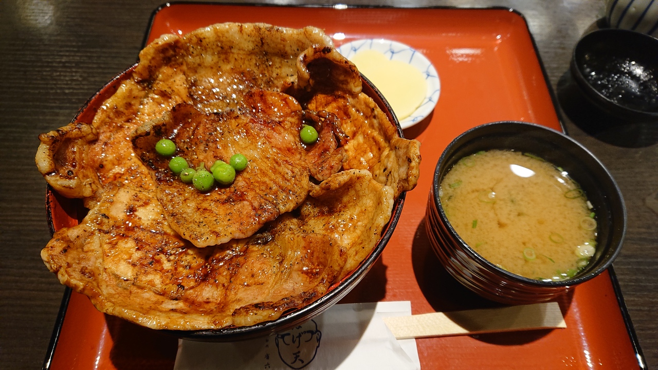 帯広駅近く、東銀座街にある天ぷらと郷土料理のお店。昭和9年に帯広で創業した老舗のお店で、銀座のハゲ天とは関係ないとのこと。帯広駅や北広島の三井アウトレットパーク、さらには香港マキシムグループとの合弁で九龍にもお店があるという意欲的なお店の本店。お店に入ると、他の豚丼のお店とは異なり、少し高めの和食のお店と感じされる雰囲気がある。そして天ぷら油の匂いがする。豚丼は、お肉4枚か6枚から選べ、ご飯の大盛可能。運ばれてきて豚丼は甘い香ばしい香り。タレだけでも販売されているだけあるレベルの高い味。お肉は周辺のお店よりも柔らかく、ジューシー。ただ、お肉4枚の豚丼が1000円なのでやや高め。天ぷら屋さんだけあって、天丼を食べているお客さんの方が多い気もした。