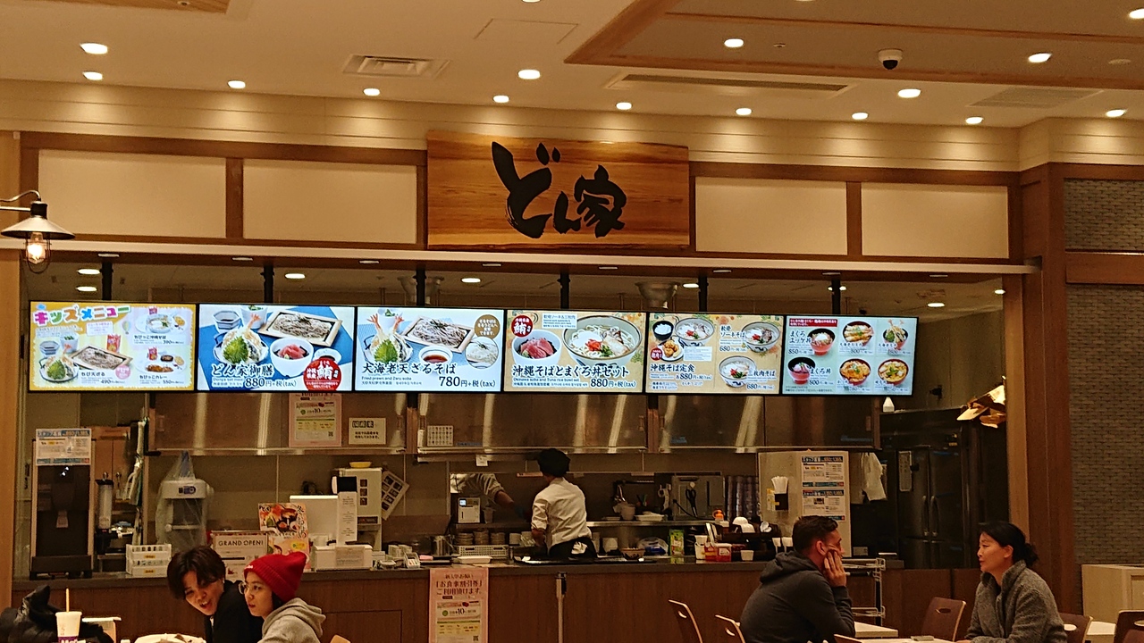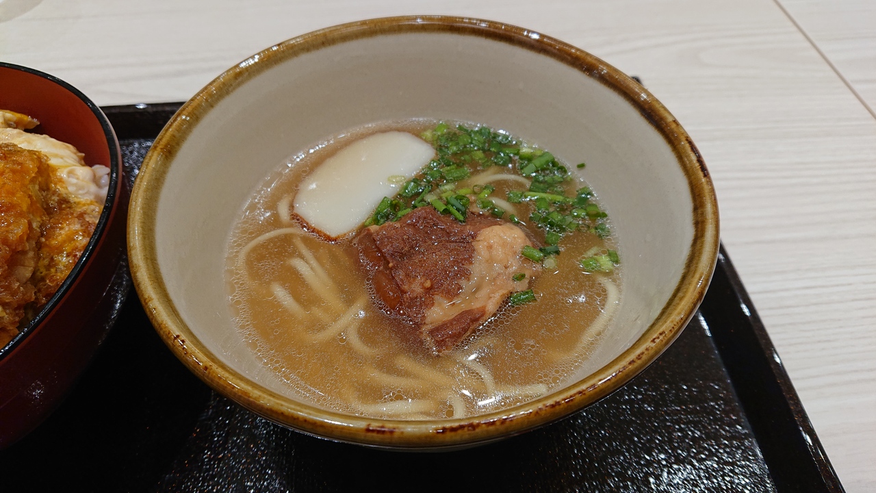 浦添パルコシティの1階のフードコートにあるお店。サンエーが経営しているお店なので、たいていのサンエーに入っているので沖縄県民にはお馴染みかも。和食レストランなので、沖縄では珍しく蕎麦、うどんや天ぷらなど沖縄料理ではない和食がメイン。もちろん沖縄そばもある。丼ものメニューはマグロ丼やカツ丼、玉子丼など。丼ものはプラス160円で味噌汁をそばやうどんに変更できる。もちろん沖縄そばにも可能。そこで、今回はカツ丼と沖縄そばのセットに。カツ丼のかつは揚げたてサクサクでお肉の厚さも申し分ない。しかし、味付けが甘くもなく、少し上品過ぎて中途半端な気がした。沖縄そばも普通で、ソーキも柔らかいが、こちらも印象が薄い。どれも専門店ではないからか、普通の味でした。