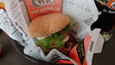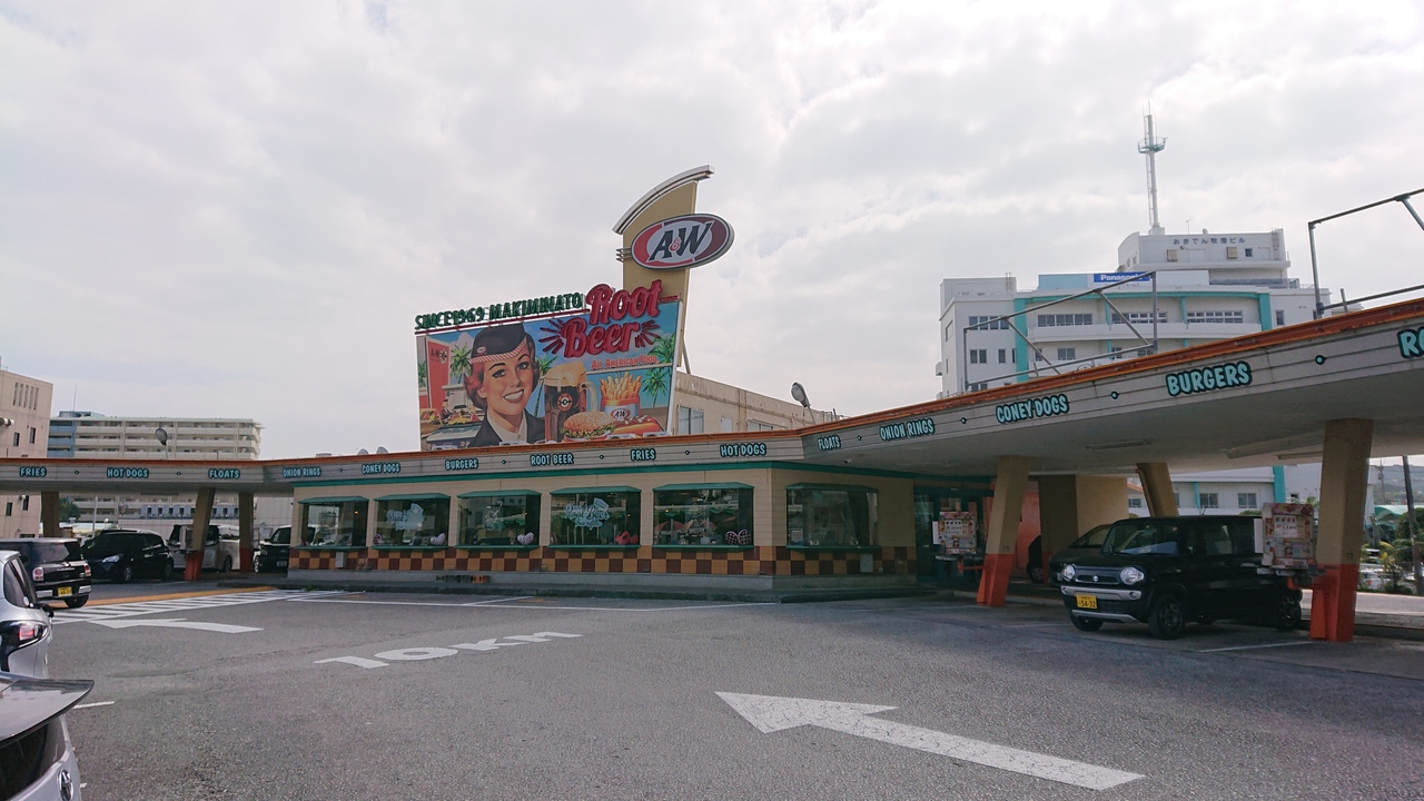 沖縄生まれのファーストフード店。那覇空港から車で20分くらい。豊見城市に入ったところにあります。沖縄県産のゴーヤを使ったハンバーガーやリングに加えて、スパゲッティやチキン、ぜんざい、あげぱんなど、メニューも豊富。ブルーシールのアイスクリームも取り扱っている。ゴーヤ入りオムレツとポークランチョンミートをサンドした「ぬーやるバーガー」は、ゴーヤが主張し過ぎず食べやすいので、東京でも受け入れられそうな味。ポテトはゴーヤリングに変更可能。ルートビアがあるのも沖縄らしい。店内は、新聞なども置いてあって何となくゆったり。敷地にはドライブスルー用の駐車スペースが16台もある。アメリカ発祥のA&Wよりもローカル色が強い。