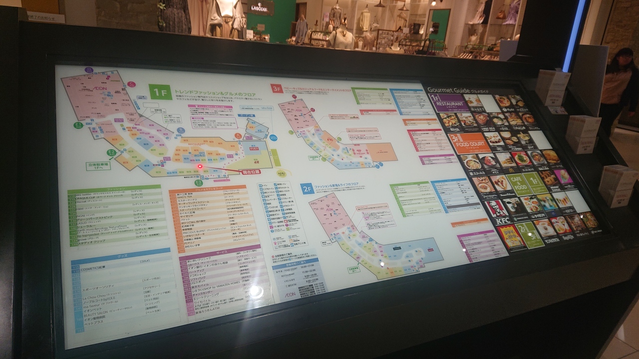 国道365号線員弁バイパスと東海環状自動車道東員ICに隣接した、東員町にあるイオンモール。三岐鉄道三岐線保々駅から徒歩25分くらい、北勢中央公園口駅から徒歩20分くらい。北勢線東員駅と三岐線山城駅から三岐鉄道バスのシャトルバスが1時間に1本程度出ていますが、乗客は多くなく、完全に車利用を対象としています。西桑名ネオポリスの近くなので周辺には住宅がそれなりにありますが、イオンモール以外にあまりお店のない場所なので、突然大きなイオンが建っているという印象。「さすが三重県発祥のイオン」という感じもする。土曜日の昼間のお客さんも地元の方メインで、子供連れが多い。3階建ての建物で、中核のイオンのほか専門店も入っていますが、都市部のイオンモールと比べると少なめ。少し先の桑名まで行けば大きなイオンモール桑名があり、また富田や大安にもイオンがあるので、近場の地元向けイオンモールといったところ。