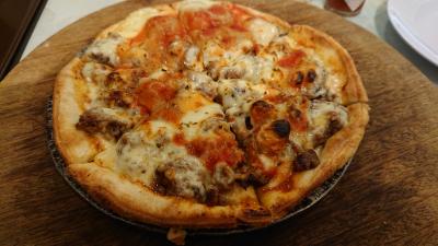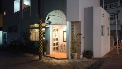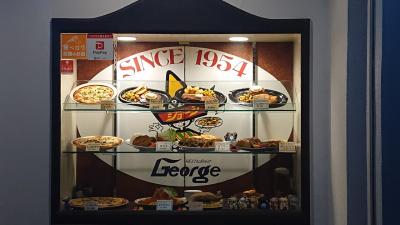 1954年創業、米国統治下の沖縄で営業が許されたAサインの老舗レストラン。建物の立て替えのため一時閉店していましたが復活。厨房の上にはAサインがかかけられている。クロスのかかったテーブルの店内は、所々に当時のものが使われていて十分雰囲気が残っている。メニューはステーキもありますが、タコス、サンドウィッチ、A、B、CXランチ、スパゲッティ、ハンバーグと豊富。お酒を飲みながらでも全然イケル。やはりピザが食べたくてハンバーグピザと500円のCランチを注文。最初に提供されたマッシュルームスープは、沖縄のレストランで食べていることを一気に思い出させる味。Cランチのトンカツは、柔らかく、衣も暑すぎず。まるでドイツのシュニッツェルのよう。もちろん美味。ソーセージもしっかり焼いてあるのが嬉しい。ピザは生地薄目のタイプで、これだけでも十分お店をやっていけそうな自慢の味。ハンバーグの味もしっかり。夜遅くなっても結構お届け(出前)や持ち帰りの注文も入るようで、結構、忙しそうだった。歓楽街の辻にありますが、お店の周辺に怪しいお店はありません。駐車場なし。那覇の時代を感じさせる、また行きたいお店です。