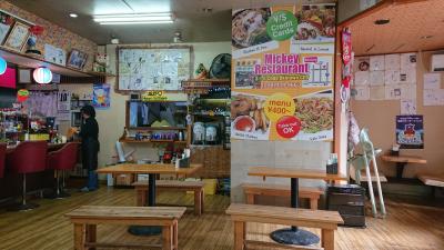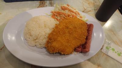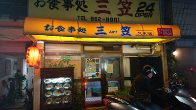 西消防署通り、ホテルトリフィート那覇旭橋、東横INN旭橋駅ら徒歩5分くらいのところにある食堂。入口にはカウンターが控え、奥にテーブル席。中央にはテレビが。店内には食券機が2台。入口に近い食券機には、番号しか書いてなく、その上にあるメニューを見ながら、注文を決める。ここの三笠には焼肉、すきやき、ちゃんぽん、とんかつ、ポーク玉子などお馴染みのメニューに加えステーキもある。今回は「三笠ランチ」をオーダー。メンチ、魚フライ、パーク、ハンバーグ、唐揚げ…、目玉焼きとまさに大人のお子さまランチ。いろいろ楽しめるのがランチの魅力。もちろんランチは一日中。これまで24時間、毎日の営業でしたが、2月から毎週火曜日が、お休みになるとのこと。