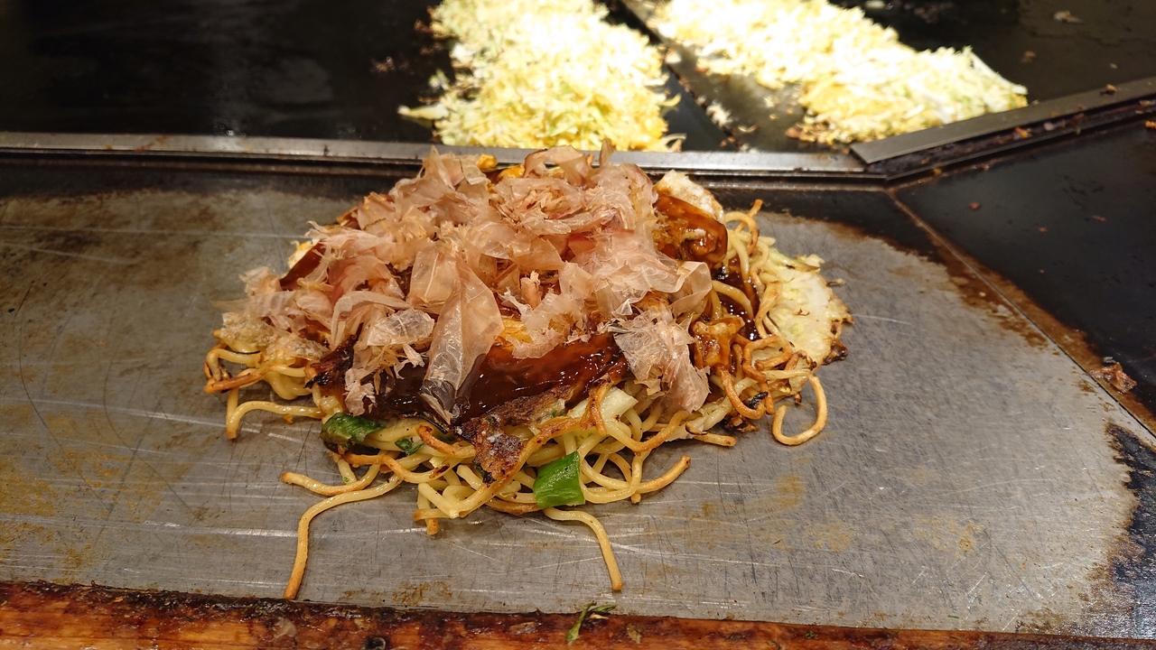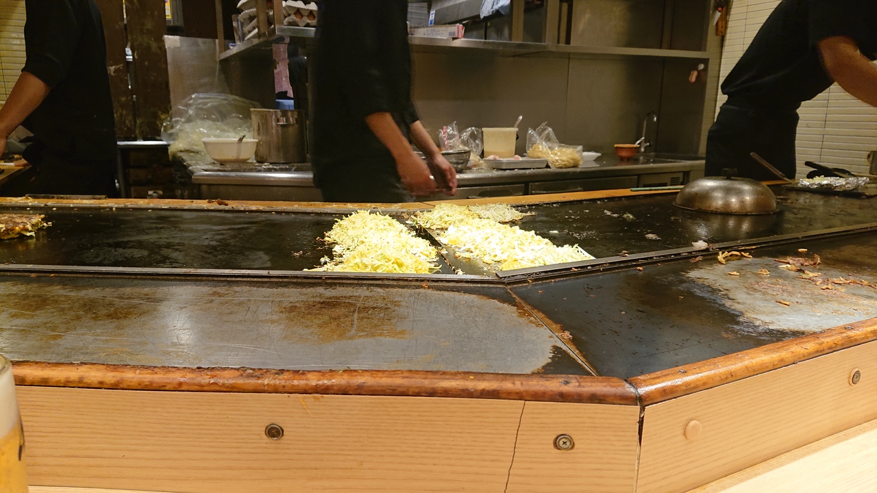 大阪駅直結のルクア10階のレストラン街にあるお好み焼き屋さん。大阪生野発祥で、以前は西武百貨店西武本店にも出店していましたが、今は新深江とこちらのお店のみ。「いもすじいか豚玉」が人気で、桂文枝さん、赤井英和さん、野茂英雄さんをはじめ有名人はこちらを頼むとか。池袋西武のお店は何度か通いましたが、こちらのお店初めて。今回ほオムソバで、いもすじいか豚とチーズをトッピングしてみました。いもが入ったお好み焼きは、ホクホク感があり、他店ではなかなか味わえない感覚。すじにはしっかりと味がついており美味。ただ、ソースが加わるので、食べている間に少し味が濃い気もしてきました。カウンター席もあり、一人でも安心して食べられます。