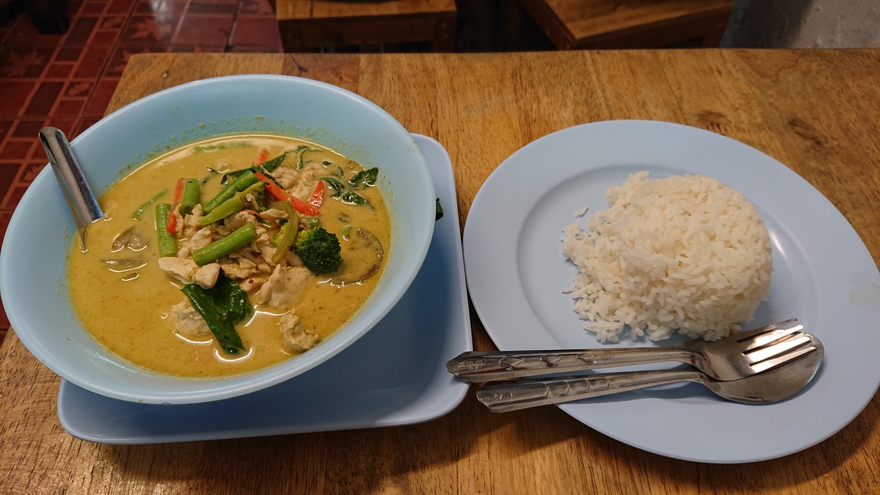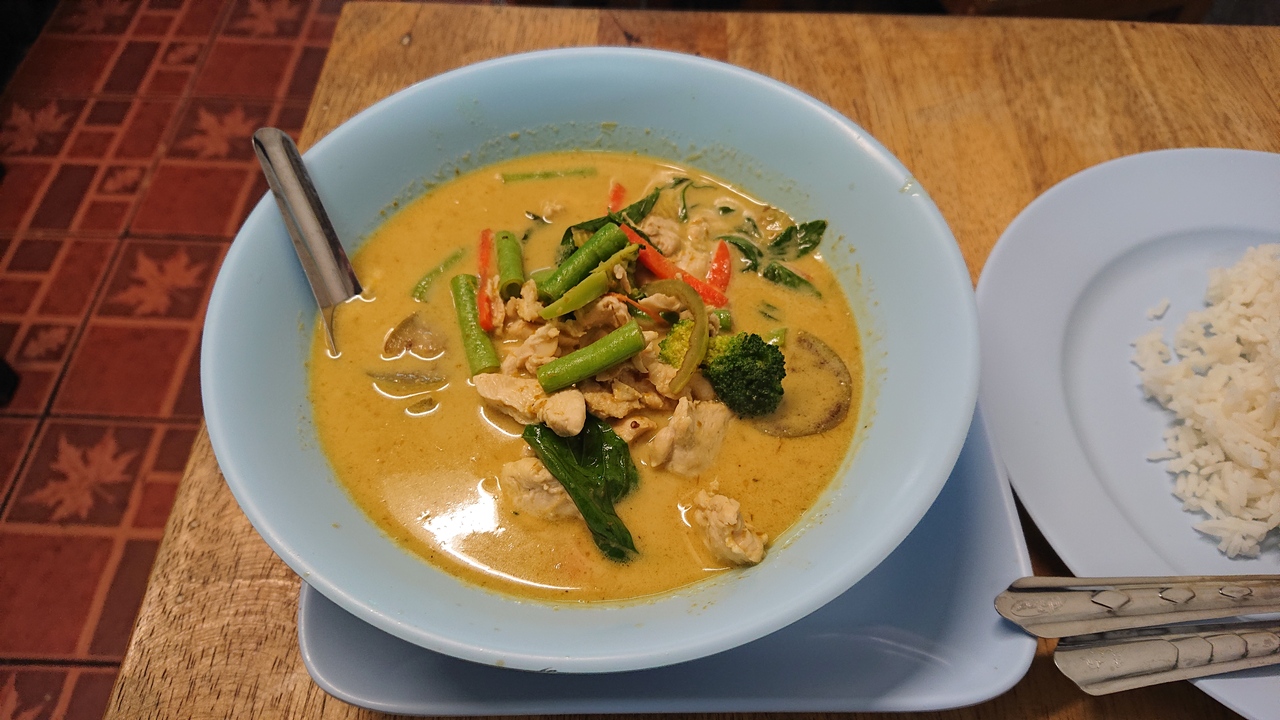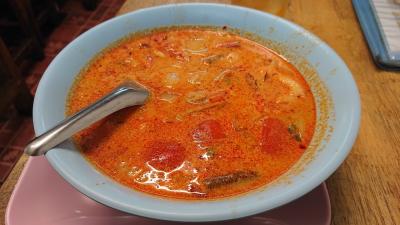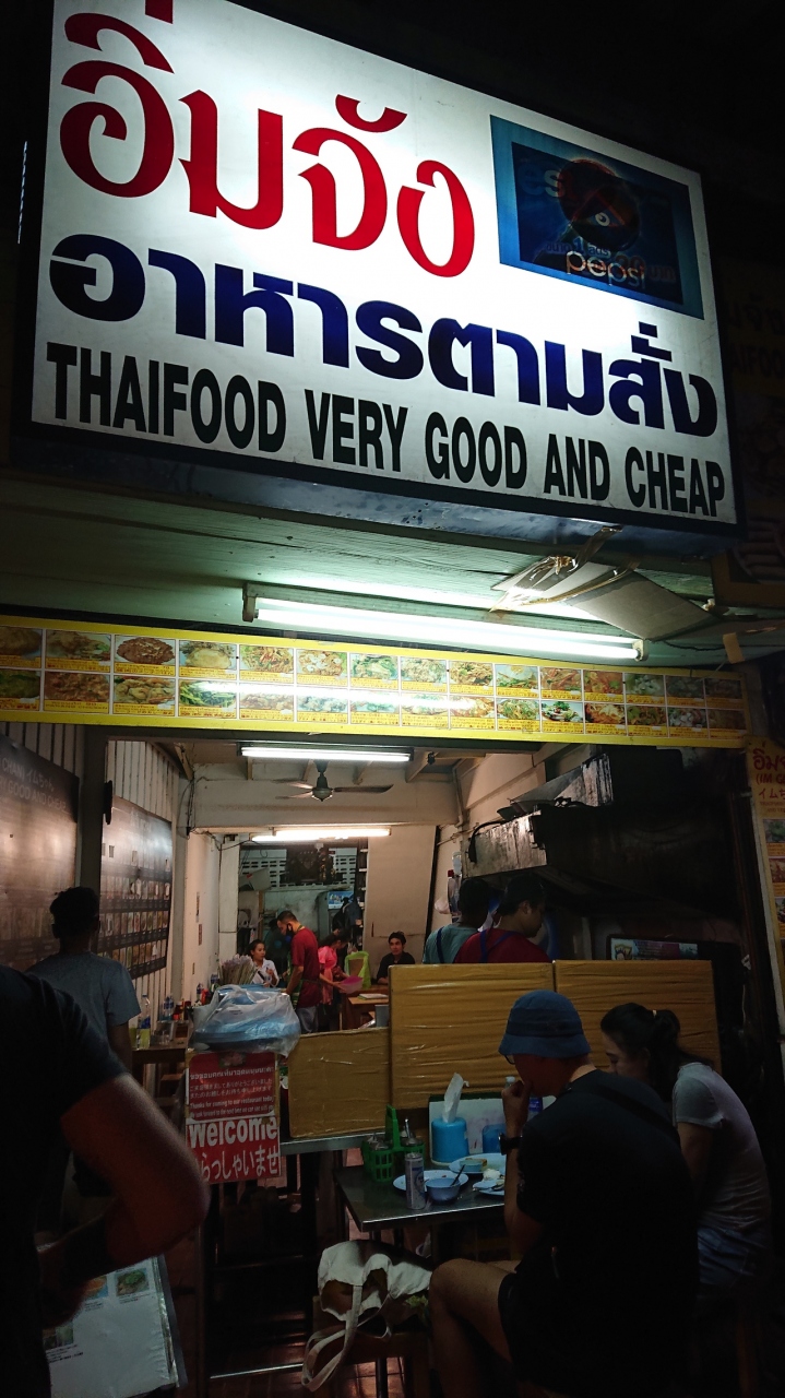 BTSプロンポン駅のそばに2店舗、トンロー駅のそばに1店舗を構える庶民的タイ料理店。日本語メニューもあり、辛さもメニューでわかり、価格も庶民的で、現地の方も日本人駐在者にも観光客にも人気のお店。東南アジアで良く見かける屋台から発展したような、扉のないオープンなお店で、お店の入り口で、注文をもらうと料理を作るスタイル。メニューは100種類くらいあり、たいていの庶民的なタイ料理があると思って間違いない。色々食べたいものはあったのですが、今回はトムヤムクンとグリーンカレー、ビールを注文。トムヤムクンは、酸味、辛味、甘味のが喧嘩せず、それぞれが主張しすぎないほどよい味で美味。高級店に負けない味。グリーンカレーは、辛さにもココナッツミルクの甘さでマイルドな仕上がり。ここぞ本場のタイカレーという印象。実は、パパイヤサラダ(ソムタム)を頼んだのですが、忘れられたようで出てこなかった(これを食べていたら食べ過ぎだったので、結果としてはよかった)。気軽にタイ料理が頂けるお店です。