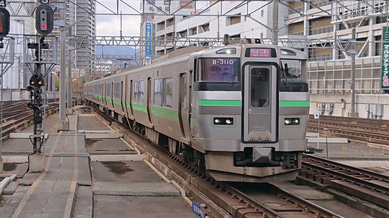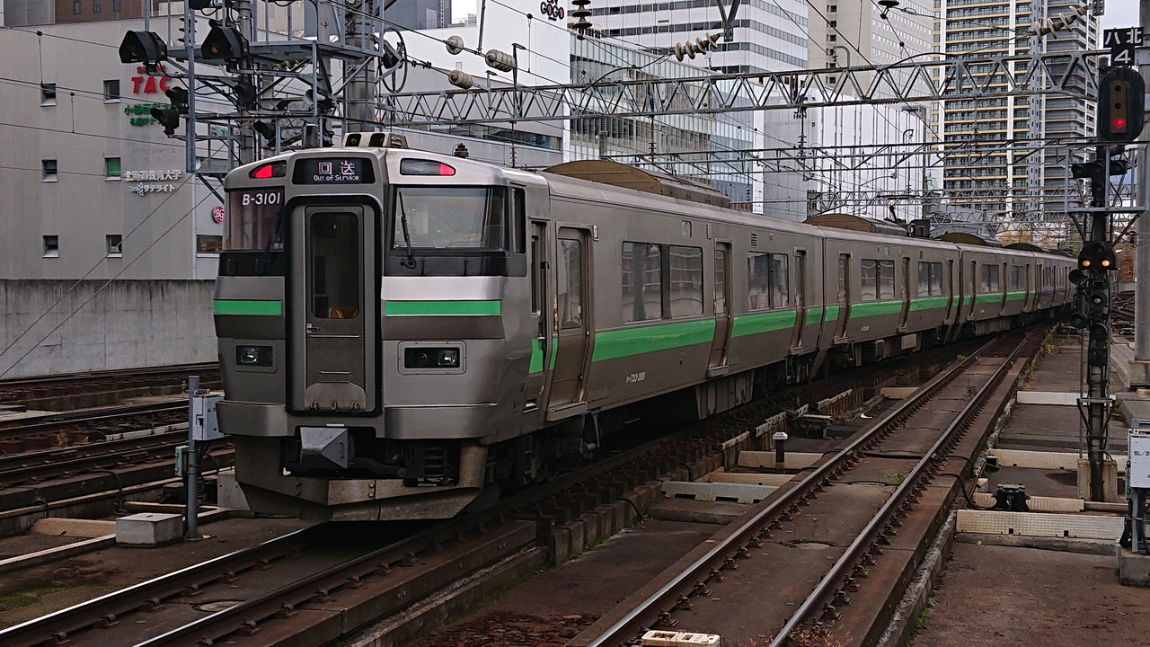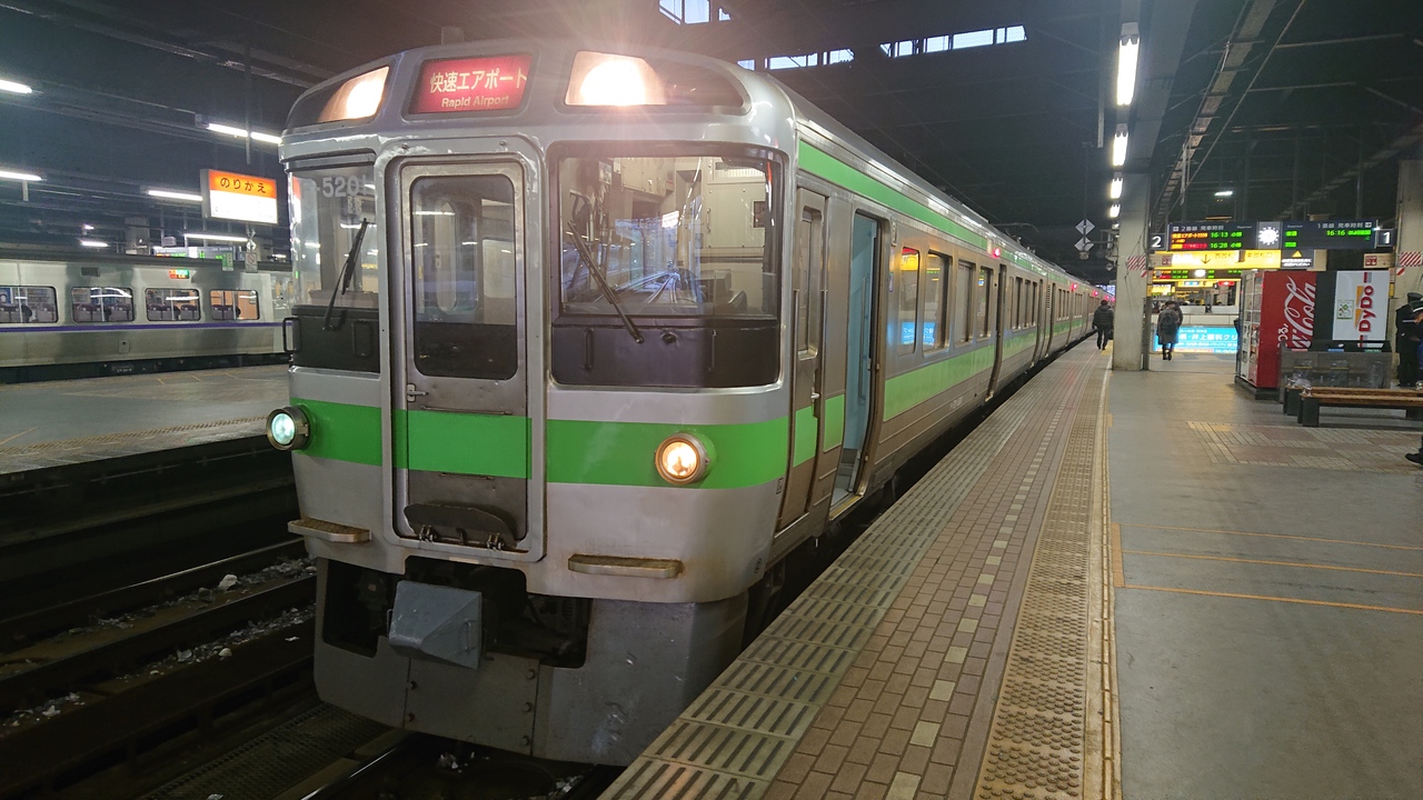 新千歳空港~札幌・小樽間を、最高速度120キロ、最速37分(新千歳空港~札幌間)で結ぶ快速電車。札幌までの停車駅は南千歳、千歳、恵庭、北広島、新札幌のみ(ただし、早朝と夜間に白石に停車する)。空港アクセス列車ですが、途中駅での乗降客も多く、昼夜にわたり混雑。車両は座席指定席uシート含む6両編成で、以前は、クロスシート車の721系が中心でしたが、現在は多くの列車がやuシート以外はロングシートの733系に置き換わり、通勤電車の色合いが濃くなっています。通常、1時間あたり4本、15分おきに運行されていますが、2020年3月14日のダイヤ改正で、1時間あたり5本運行されることになっており、早朝の札幌発新千歳空港行きの新設や南千歳と新札幌のみ停車の特別快速も新設されるとのこと。2018年10月からWi-Fiの設置工事が始まっており、一部の列車で利用可能。2020年夏までに全列車での利用ができるようになる。ますます便利になります。