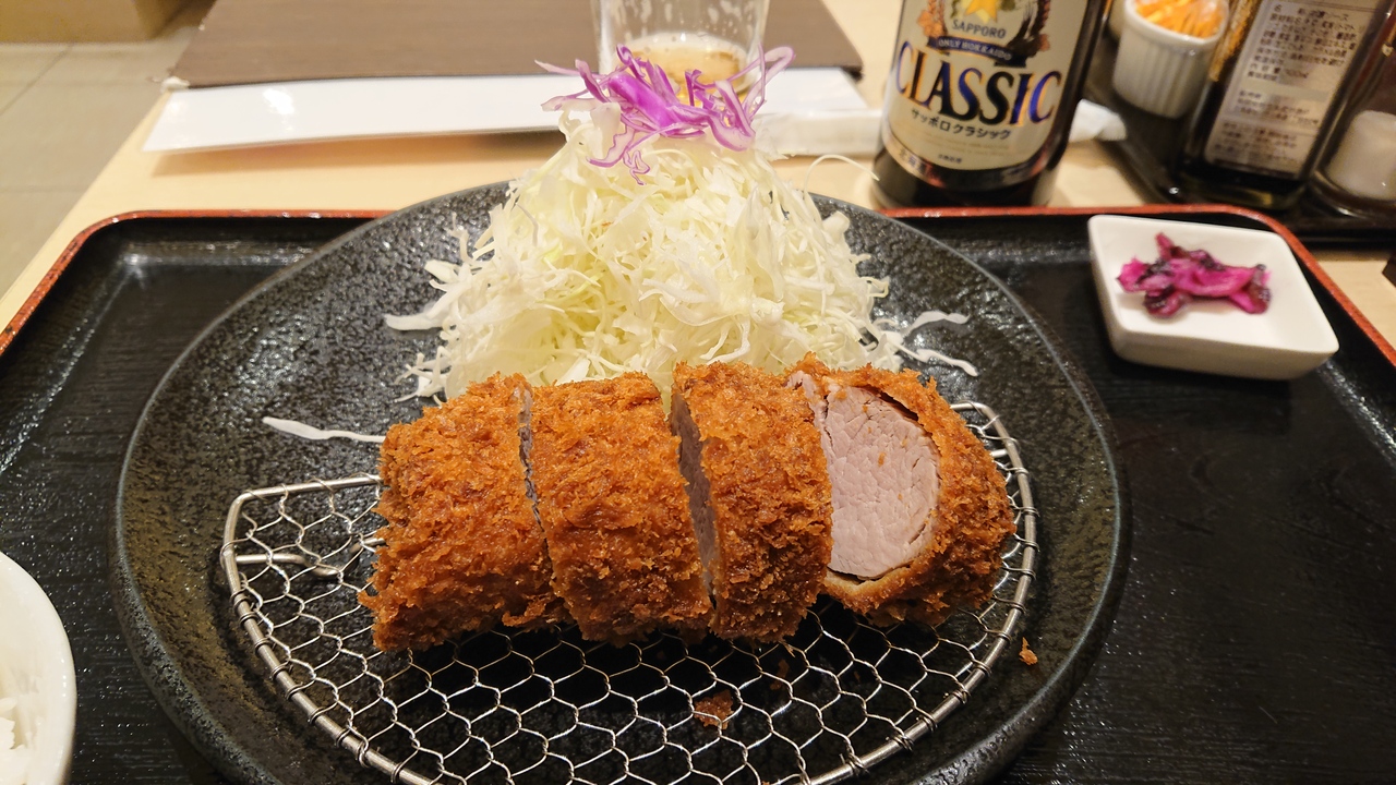東京・湯島の上野井泉本店から昭和47年に暖簾分けした「あさひ川井泉」の支店。せっかくなので、棒ヒレを注文。15分くらいかかりますが、下手をするもパサパサになりそうなヒレ肉も、そうならないのが老舗の技。良質な飼料で四元豚を使っていているので脂にも甘味があり、クセがなく、ジューシーで柔らかな食感。ソースはオリジナルのもので、旭川で製造。これがカツの味を引き立てます。ご飯、味噌汁、キャベツはおかわり無料。旭川で井泉のカツを食べられるとは思わなかった。もちろん美味。残念なのは、サッポロクラッシックの生が置いていないこと。