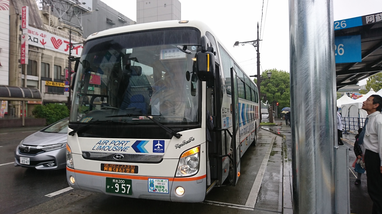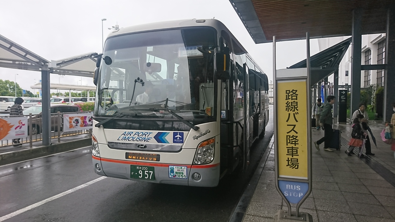 熊本市内から阿蘇くまもと空港までを50~70分で結ぶリムジンバス。高森行きの「たかもり号」、内牧温泉行きの「Aso-go」と合わせて一時間に3本程度運転されており本数は多いものの、フライトに接続しているわけではないので、予め出発時刻を考えて乗車する必要があります。熊本空港は熊本市の隣の益城町にあり熊本市内中心部とは20キロ程度離れており、公共交通機関としてはこちらが一般的なルート。空港の最寄駅となる肥後大津駅(空港ライナー)経由JR利用というルートもないわけではありませんが、乗換もあり、市内中心部には別途市電かバスへの乗換も必要となるので、一般的ではありません。一般道をひたすら走るルートで、一路線のみ。始発の西部車庫から熊本駅、桜町バスターミナル、通町筋、水前寺公園など、熊本市内の主要ポイントに停車。空港までの停留所数は19もあり、通町筋あたりからは混雑していることがあり、次のバスを案内されることもあります。運行は地元の産交バスが担当しており、比較的新しい車両を使っていますが、韓国・ヒュンダイ製のバスはイマイチ乗り心地が悪い気がします。なお、SuicaやICOCAなど、交通系ICカードの利用も可能です。