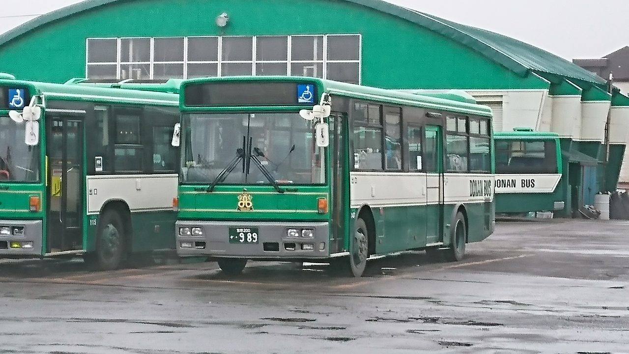 室蘭、胆振、日高、後志地方をエリアとするバス。緑色基調の落ち着いた車体は、どことなく北海道を連想させるカラーで、室蘭や市営バスを引き継いだ苫小牧でよく見ますが、都市間バスが多く発着する札幌でもお馴染み。新千歳空港でもよく見かけます。また、浦河など鉄道の利便性のよくない地域も担当しており、地元では欠かさない存在。地球岬や室蘭の工場夜景、海岸景観など観光でもうまく使えば短時間でのアクセスが可能。ただ、交通系ICカードが利用できないのが残念。他事業者から移籍した車両も多く、東京の関東バスから移籍した車両の中には、貴重な3扉車も含まれます。