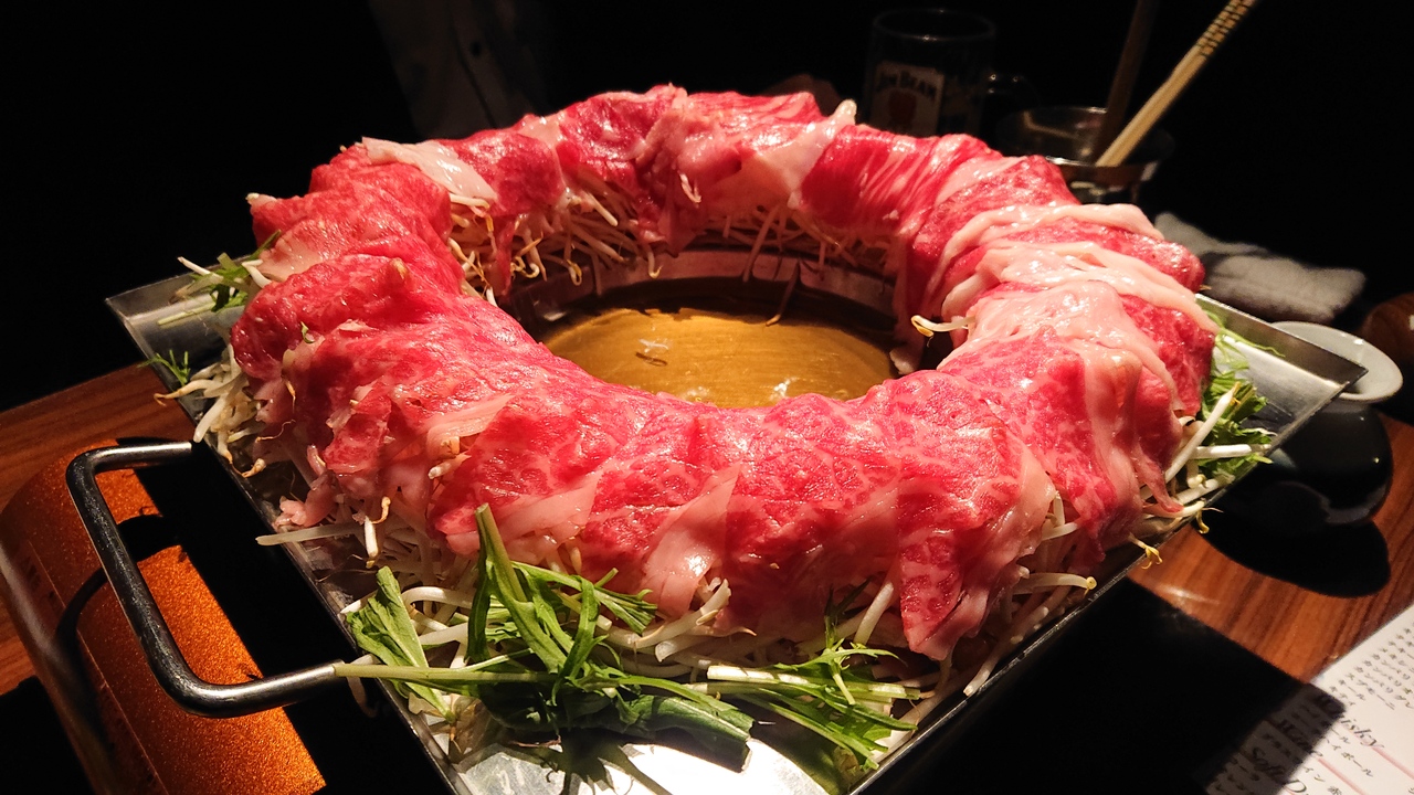 銀座通りから2本裏通りに入ったところにあるビルの4階、5階にあるお店。少し薄暗い店内は、ラウンジっぽく雰囲気はよい。2~3時間飲み放題コースが基本で、メインは「炊き鍋」(簡単に言うとしゃぶしゃぶ)。お肉の種類、飲み放題の時間で値段は変わる。飲み放題メニューにスパークリングワイン(最初の一杯だけでもよい)くらい加えてほしいところだか、ビール、カクテル系の種類は豊富。逆にワインの種類は少ないが価格を考えるなら仕方がないかも。しゃぶしゃぶのお肉は質は悪くなく、だし汁も工夫があるようで美味。ただし、コースとしてはなんとなくノーマルで、新鮮味が感じられなかった。とはいえ、銀座で飲み放題で、まぁまぁのしゃぶしゃぶのコースが食べられると思えばコスパはかなりよいと思う。なお、Webには「完全個室」とありますが、半個室くらいな感じで、完全に仕切られているわけではない。