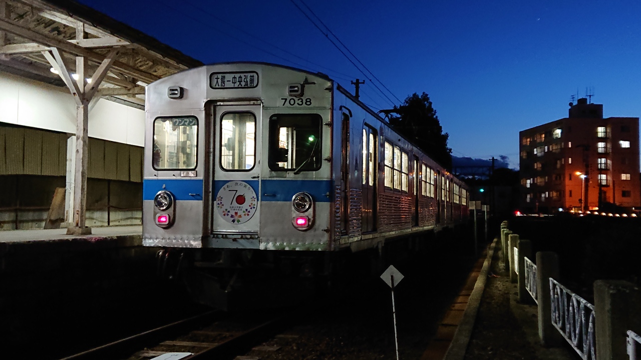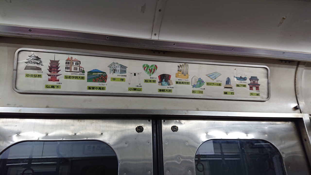 1952年1月に弘前電気鉄道によって中央弘前~大鰐間13.9キロが開通。1970年10月に弘南鉄道に譲渡され、大鰐線となりました。こうした歴史的な経緯があり、弘南線とはつながっていません。始発となる中央弘前駅は、JR・弘南線の弘前駅からは1.3キロ離れた古くからの商店街の外れにあり、近隣に弘前中三をはじめ商店は多いものの、近年、衰退が進んでおり寂しい状況。利用者数もピーク時の14%まで減少。廃止方針が出されるのの、なんもか撤回され、維持されている状況。これまでは弘南線の黒字でなんとかやってきましたが、2018年度に赤字に転落したため、今後、予断を許さない状況てもある。さらに2019年10月のダイヤ改正により、本数か20往復/日から17往復/日に削減。始発か繰り下げられ、夕方のラッシュ時も含めて1時間に1本程度の運転に。こうした厳しい状況であることからか、車両も1962年製の元東急7000系を1988年に譲受以来、ずっと使っており、冷房もなく、座席には穴が空いているなどかなりくたびれている様子。つり革は、リンゴ生産量ナンバーワンの弘前市を走る電車だけあって、リンゴを模した赤いもの、さらには一個だけハートのものがあり、テレビ番組に取り上げられるなど人気。今は、なんとか持ちこたえている状況ですが、夕方でも立ち席のないくらいの混雑なので、まずは数年後には必ずやってくる多額の費用がかかる車両更新が出来るかではないかと思う。頑張れ大鰐線!