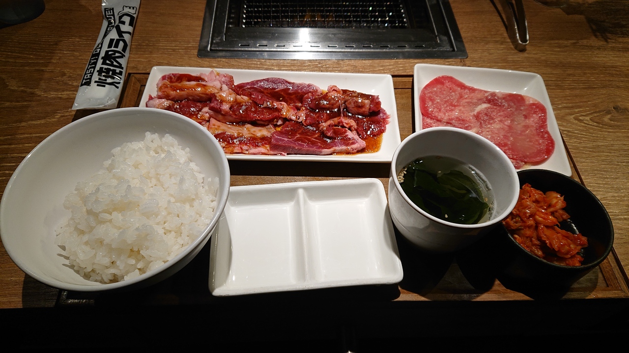一人1台のロースターで、手軽に焼肉が楽しめるお店。2018年夏に新橋に1号店をオープン以来、店舗が増えており、秋葉原のお店もその一つ。中央通りから少し入ったところにあるビル(かつやの隣)の2階にある店舗ですが、時間帯によっては階段の外まで並んでいることも。今回は休日の14時過ぎに来店。それでも待ち人2人。ただ、一人焼肉のお客さんが多く、食べ終わればすぐに帰るためか、回転は速い。今回は待つこと3分で入れました。まず、お店の方から、目の前のタッチパネルの使い方をレクチャーされ、オーダーする。今回は、少し贅沢に「牛タン&匠カルビ&ハラミプレート200g」(1480円)を注文。お店には一台ずつ無縁ロースターが並び、テーブルの引き出しには韓国のお店のように箸やおしぼりが準備されています。また、回転寿司屋さんのようにウォーターサーバーもそれぞれに完備。待つこと数分、運ばれてきたお肉は3週間以上低温熟成させたアメリカ産もしくは日本産の牛肉とのこと。もちろん高級店には及ばないものの、肉質もコスパを考えればかなりよく、カルビも脂ばかりではなく、タンもハラミも柔らかい。しかも、ランチタイムはお米は岩手産ひとめぼれが食べ放題。「牛すき焼肉」なら200gで940円。お一人様でも焼肉が楽しめるなんて相当嬉しい。焼肉のファーストフードとはいえ、手は抜いていない。御用達のお店になりそうです。