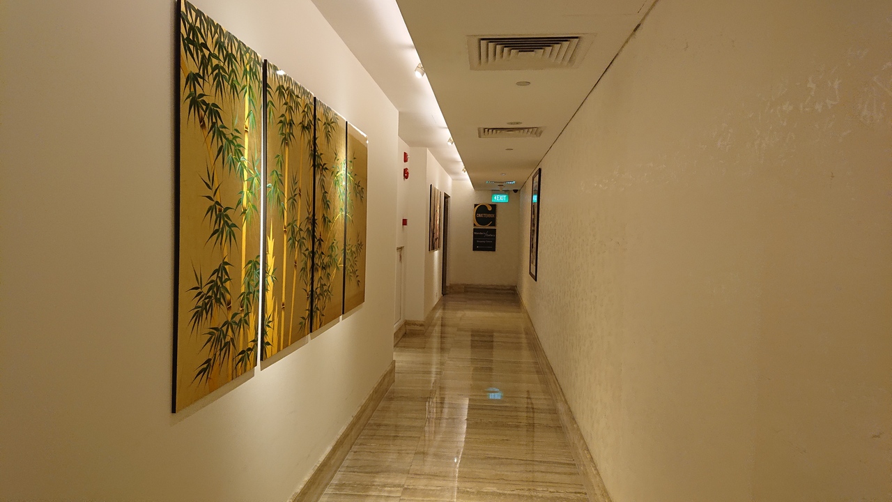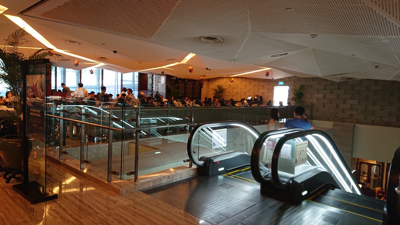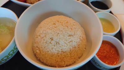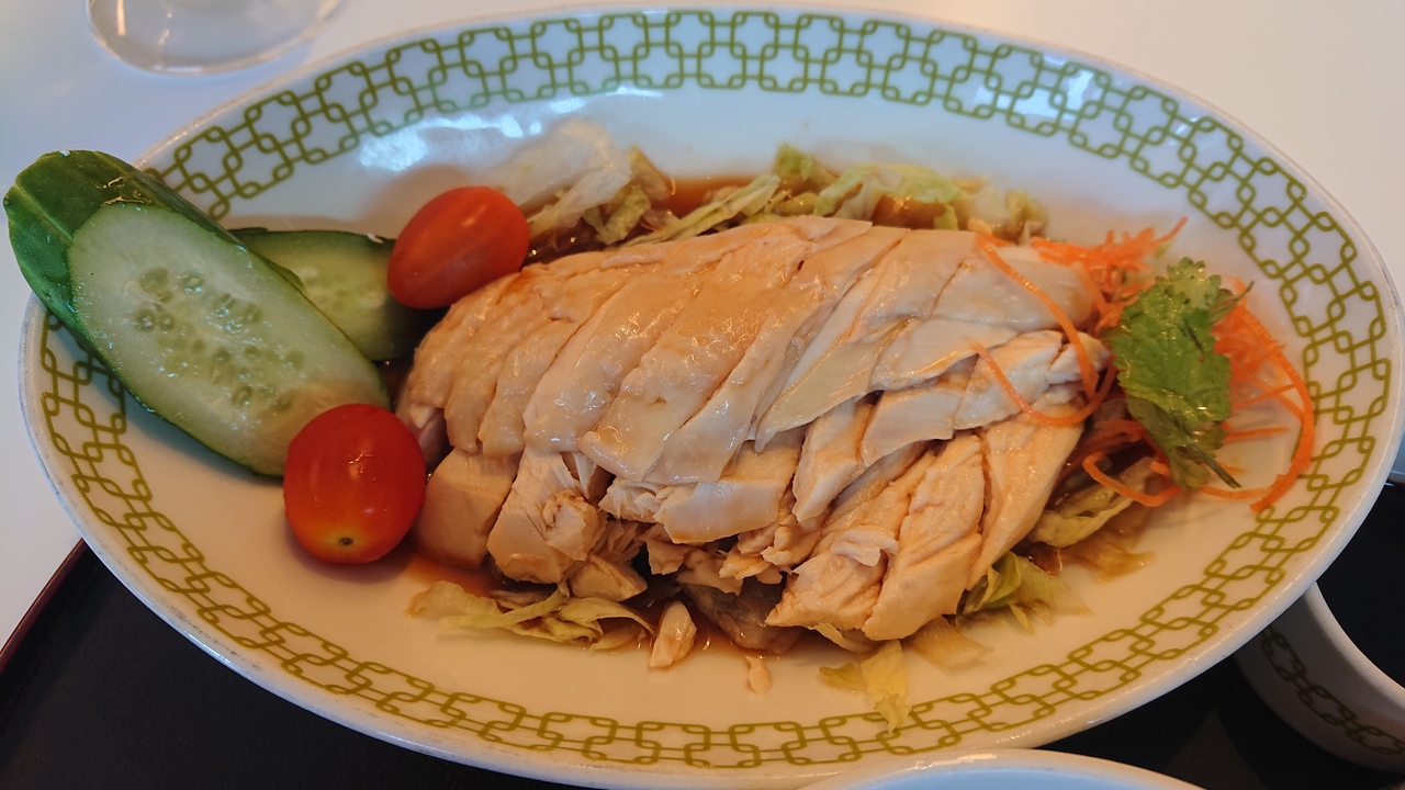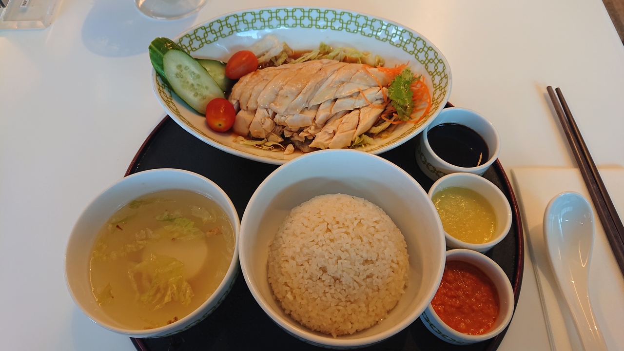 マンダリンオーチャードの別館5階にあるお店。海南鶏飯(チキンライス)が有名ですが、そのほかにもローカルメニューが多数あります。ホテル内の高級店だけあってどれも20~30ドルで、なかなかのお値段。お目当ての「マンダリンチキンライス」は27ドル、日本円で2000円以上になりますが、それだけの価値のある味。チキンライスにはしっかりと鶏肉の出汁が効いていて美味。フードコートで食べるものとはひと味違う。もちろんお肉も美味。専用農場で飼育されているという鶏肉はパサパサしておらず、皮のゼラチンもしっかりと味わえます。さらにブラックソイソース、ジンジャーソース、チリソースどれも美味。お肉に合うように計算された味。多分、これまで食べたチキンライスの中で最も美味しいと思うくらい。シンガポールに行ったら是非訪問したいお店のひとつ。なお、チャターボックスに向かう通路はギャラリーになっており、なんとなく和風です。