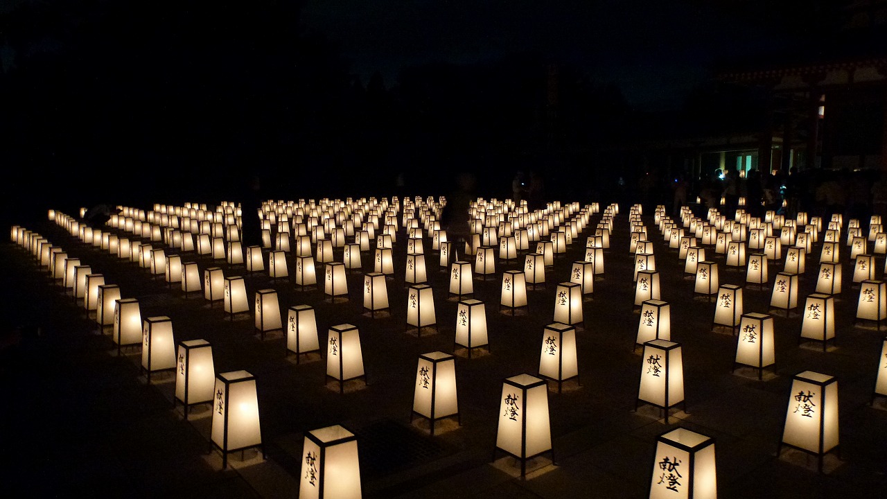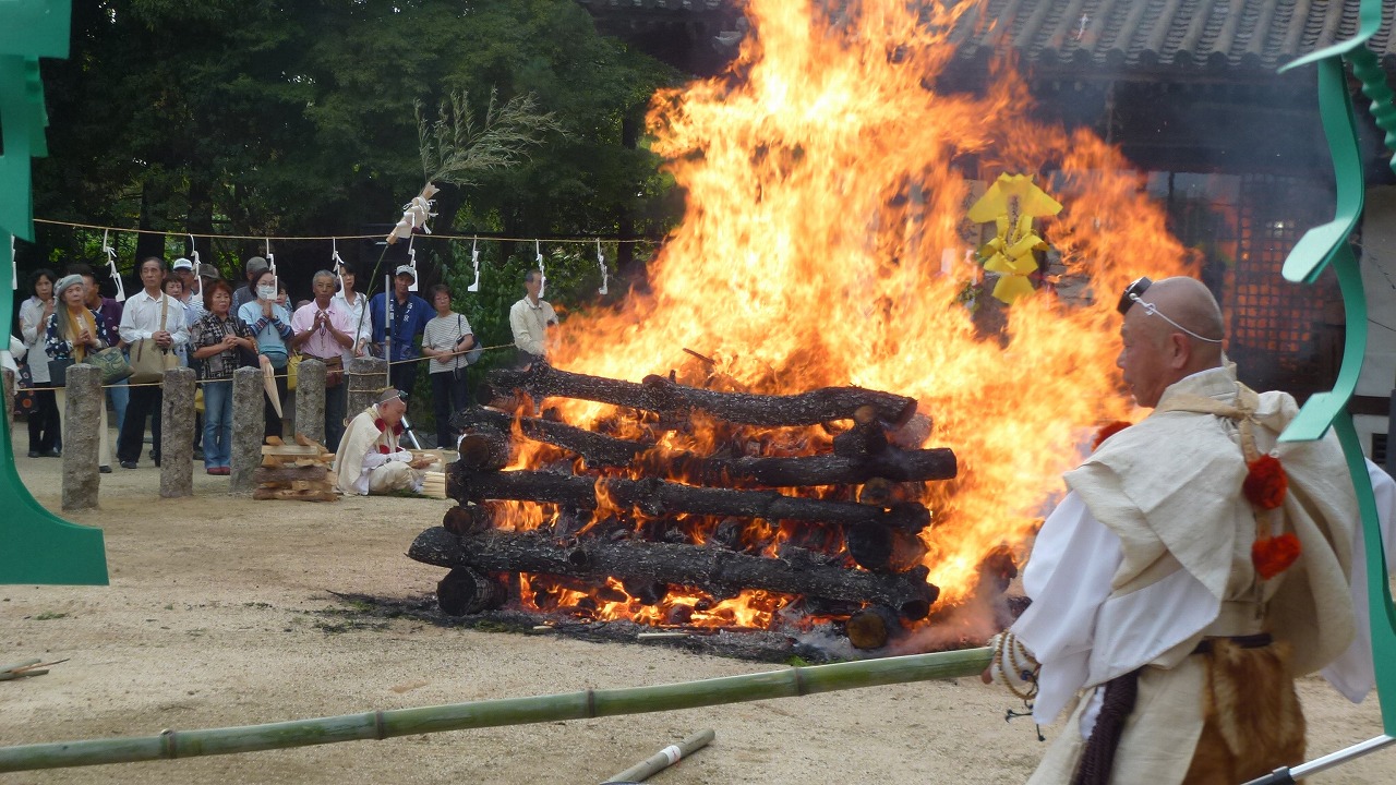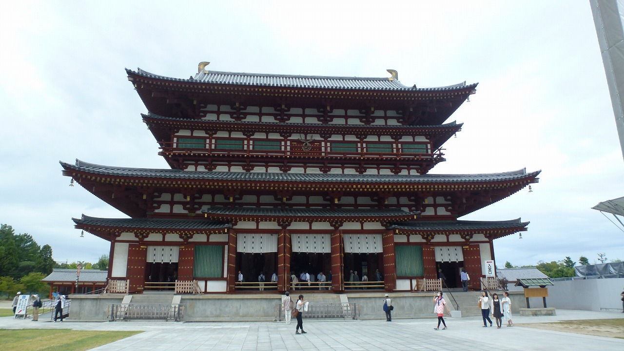 H25,10月8日,天武忌の薬師寺に行きました。午後もだいぶ過ぎてから,奈良駅前よりタクシーで薬師寺へ。拝観料1000円 伽藍を一通り見て・・薬師寺の塔はの一つ古い方は修理中。新しい方だけ。金堂に薬師三尊像(薬師如来,日光菩薩,月光菩薩)白鳳時代だって。白鳳時代は大化の改新から平城遷都までの時代,飛鳥時代の一部ですね。美術史の中で使われる。らしい・・大講堂には弥勒三尊像。仏足石や釈迦の弟子の10人の僧など見た後,護摩業(柴燈大護摩供−さいとうだいごまく)を見にいく。伽藍の隅っこの方でされていた。大きな火!お坊さんの顔が真っ赤!古式ゆかしい業の後ろを近鉄の電車が走っている。たくさんの見物人。なかなか見れない物を見れました。玄奘三蔵院伽藍見る。平山郁夫の大唐西域壁画の展示がすごかった。塔の改装中なのでそばで見ることができるという,水煙降臨展も見る。昔の官製はがきのデザインになっている楽人のレリーフ。次に18時からまた行事。時間つぶしして。。17:30ごろ寺に戻ると,中には,招待されている人(檀家さん?)が弁当を食っている。その後暗くなり,みんなが大講堂前へ。自分もついていく。最初は部外者として見物をしようと思っていたが,万灯会のろうそくがもらえそうなので一緒に並ぶ。ろうそくに火をもらって灯籠に入れる。と,まだまだ灯籠がたくさん残っているのでお役に立てればと思ってたくさんろうそくもらって灯籠に火を入れた。全部で9本入れた。灯籠にすべて灯がともった頃,お坊さんの行列が現れて18時半天武忌法要が始まる。並んでいれば大講堂の中に入って法要に参加できたようです。さすがに入りませんでした。