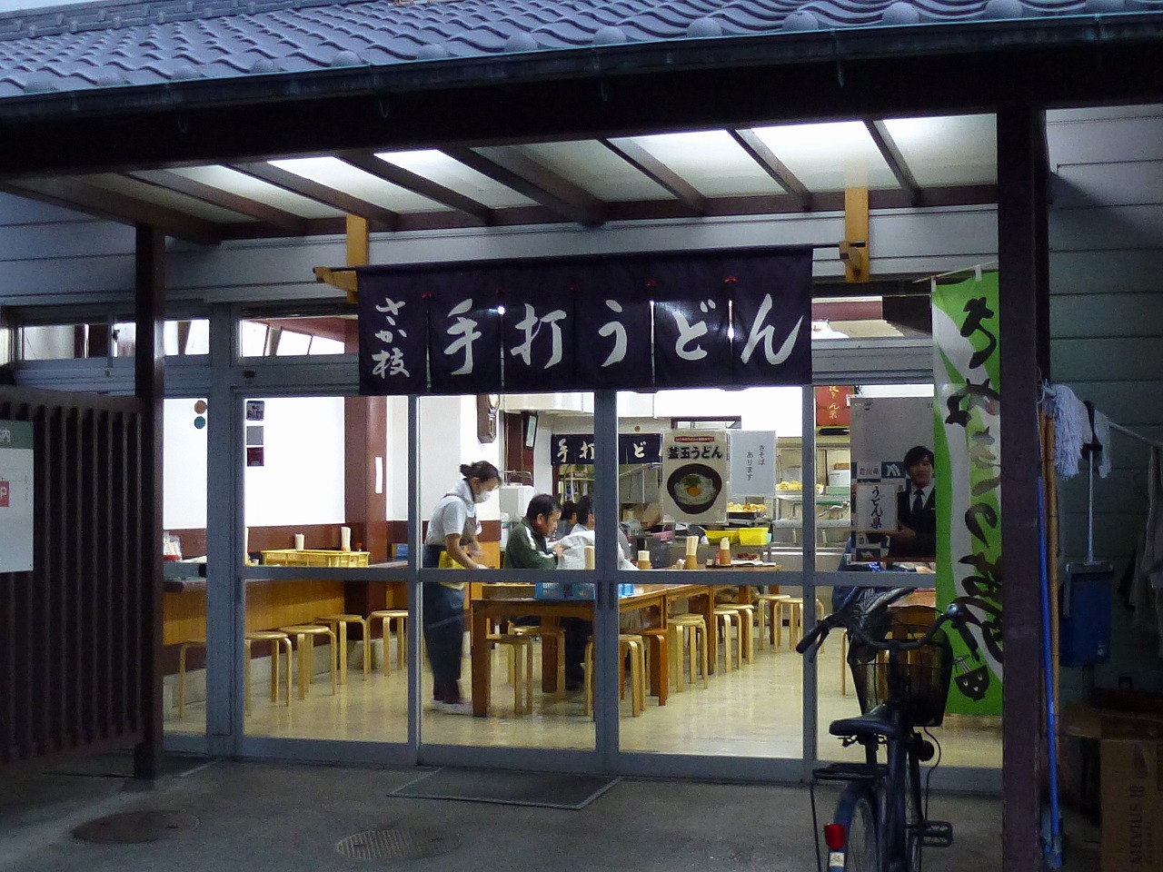 ホテルを出て朝の散歩,途中に6:30官庁街にある「さか枝」に行く。かけうどん小170円と天ぷら(卵)80円で250円。朝早くからけっこうなお客。うーんおいしい。出汁のいりこの香りが強くてインパクトがある。自分でうどんをゆで温めて,出汁をタンクから蛇口で注ぎ,薬味をかける。ちゃんと一見さんにも教えてくれたよ。5時からやってるんだって。いいなあ,高松の人は,こんな店あって。