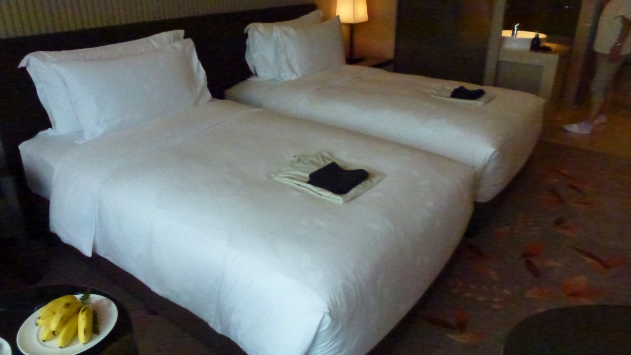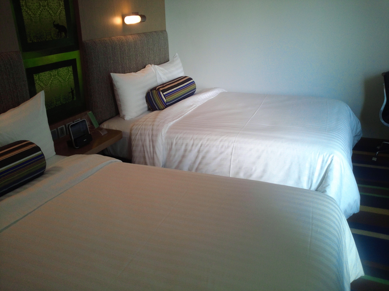 2011年夏に家族3人で泊まりました。朝食を入れて1泊6333TWSで泊まれました。とてもお得でリムジンバスが真ん前に止まるなど,交通の便も良く,朝食もバラエティに富んでいて満足できるものでした。エクストラベッドが二つのベッドの真ん中に入れられたので,ちょっと窮屈な感じがしました。