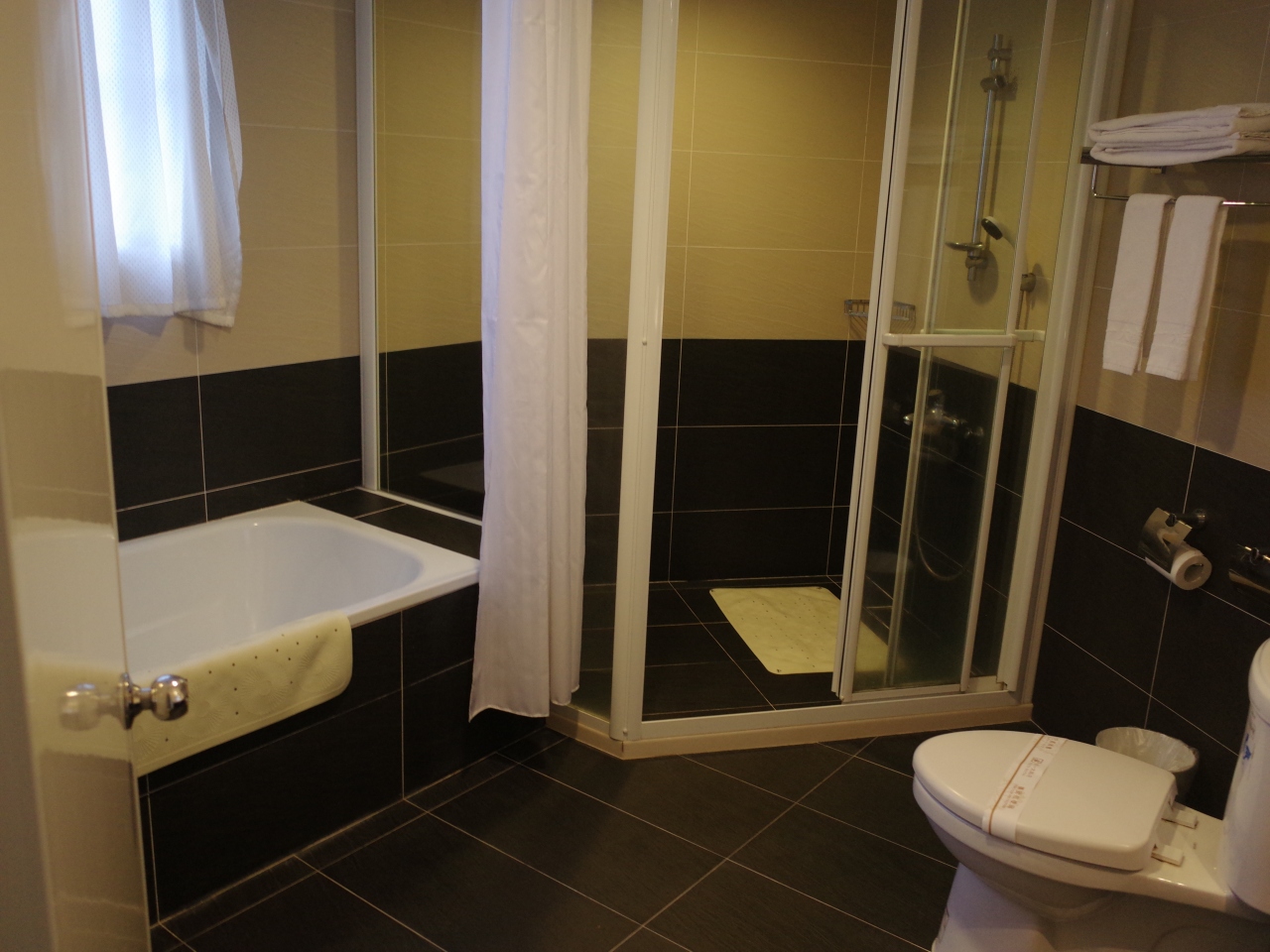 普通にツインを頼みましたが、部屋は少し窮屈。でもバスタブもエアコンもあり十分です。
