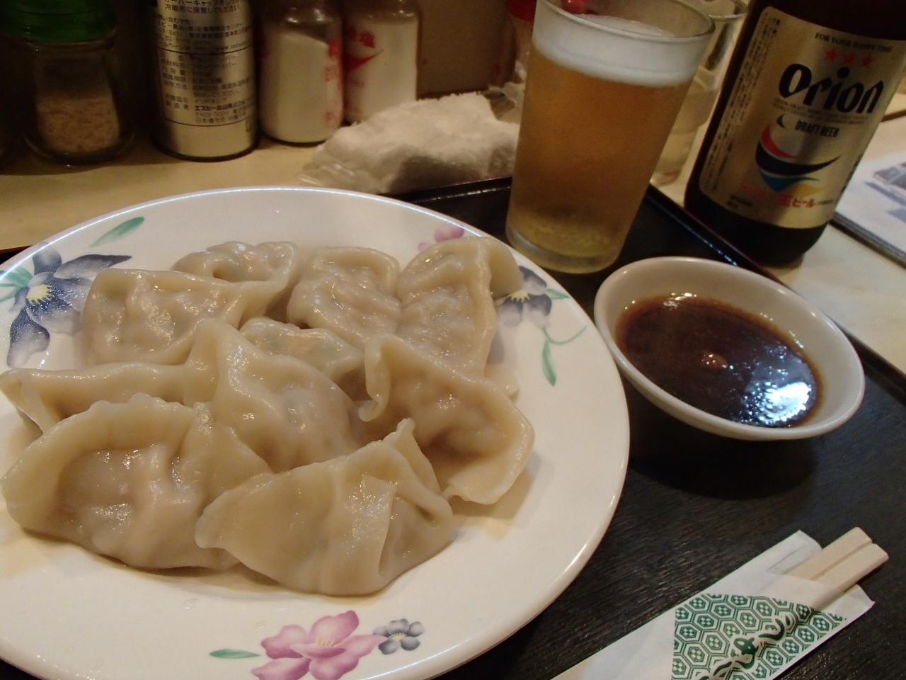 やっとでてきた水餃子はオーナーのこだわりがあり、台湾から直輸入した餃子の皮はもちもちで美味しい。