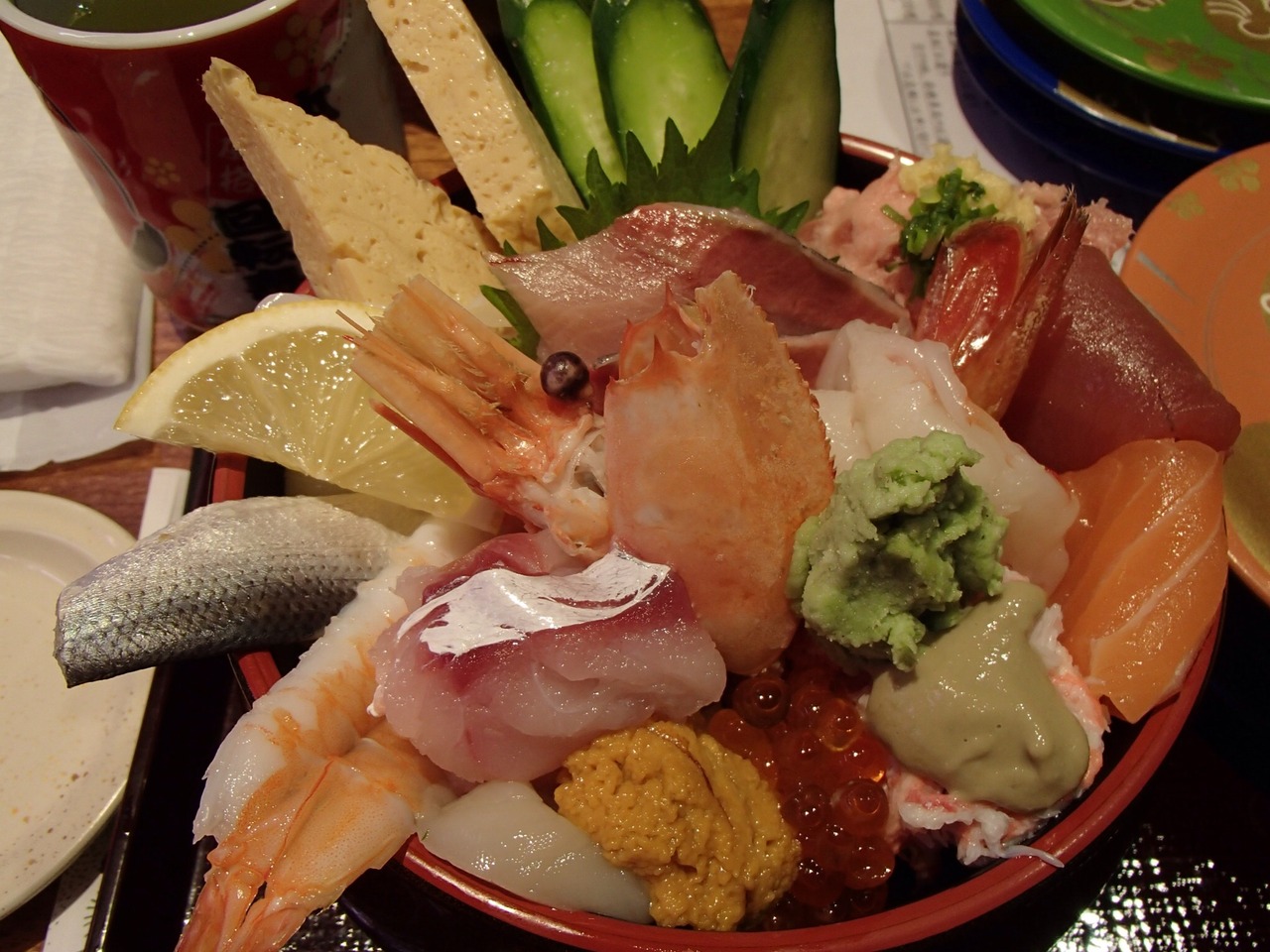 天丼は少しエビの殻が気になり、まあそれなりかなと思いましたが、お刺身は