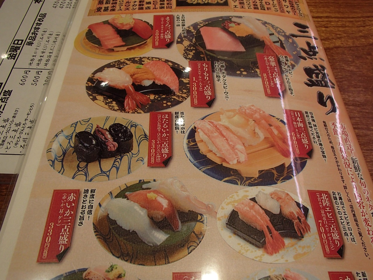金沢の回転寿司御三家のひとつ、もりもり寿司の近江町店は夜も営業しています。