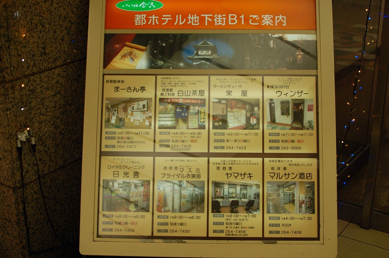 金沢駅で昼飯を食べるつもりでしたが、激混みであきらめました。穴場の都ホテル地下街に移動。