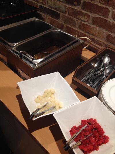 朝食バイキングは全体的に質素でしたがヨーロッパから輸入のパンとスープバー3種が変わっているところ。