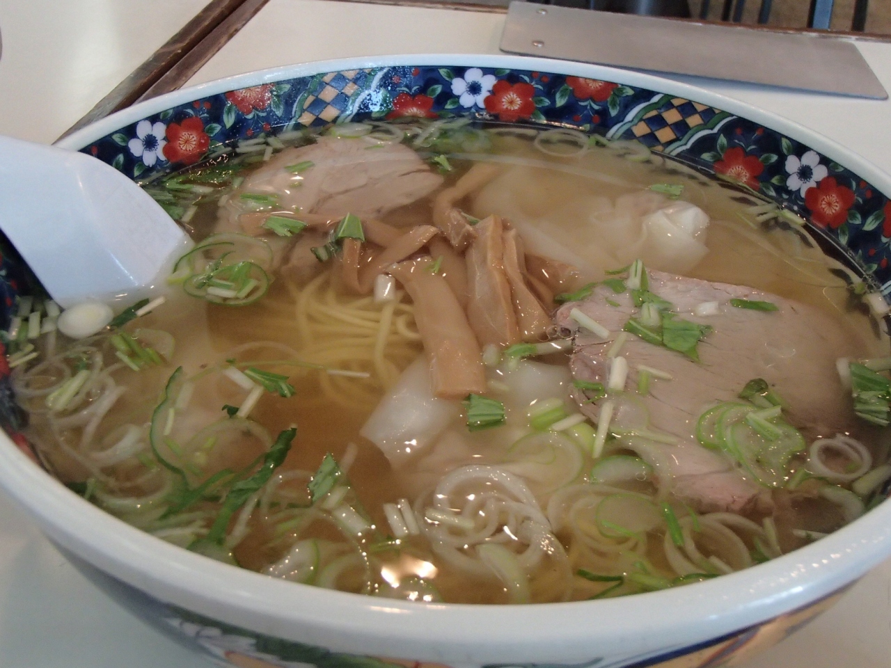 雲呑麺・・・大きい海老入りワンタンはプリプリで美味しい。