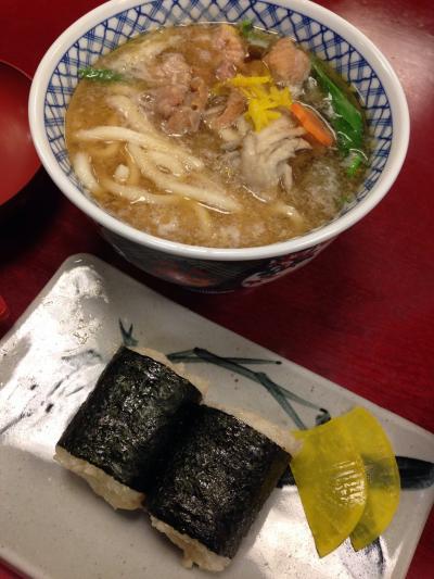 大きなおむすびが有名ですが、私はうどんとおむすびのセットを頼みました。柚子の香りがするうどんはカラダが温まって、優しいお味でした。周りはご年配の方が多かったです。- 旅行時期