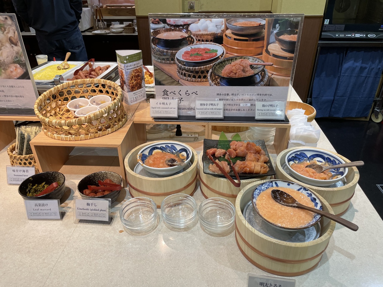 ベッセルインは広島、名古屋、札幌と泊まりましたが、中洲は初めて泊まりました。どのホテルも朝食に力を入れています。このホテルは明太子のおかずが充実していました。
