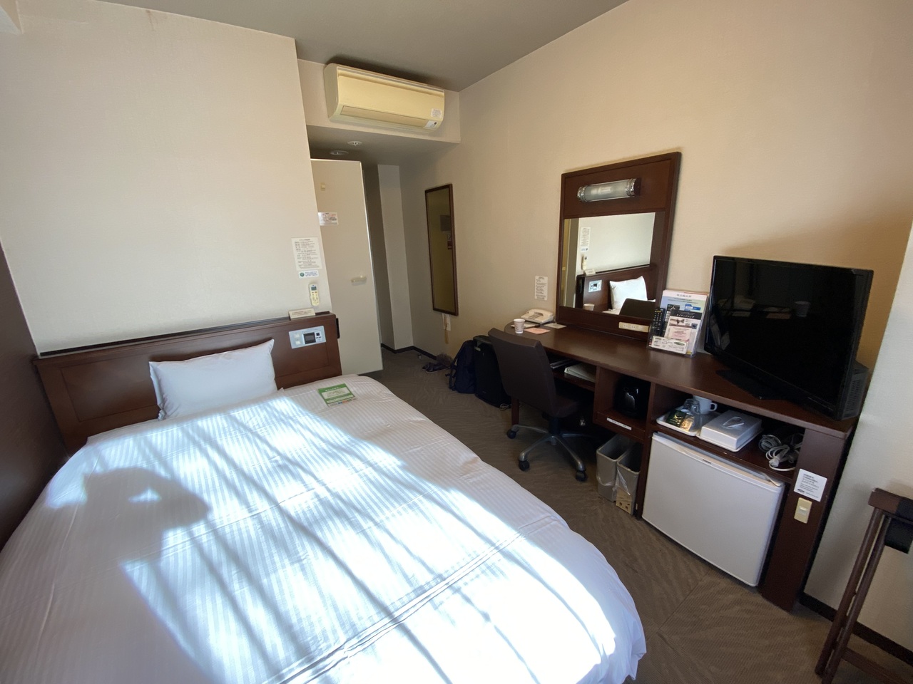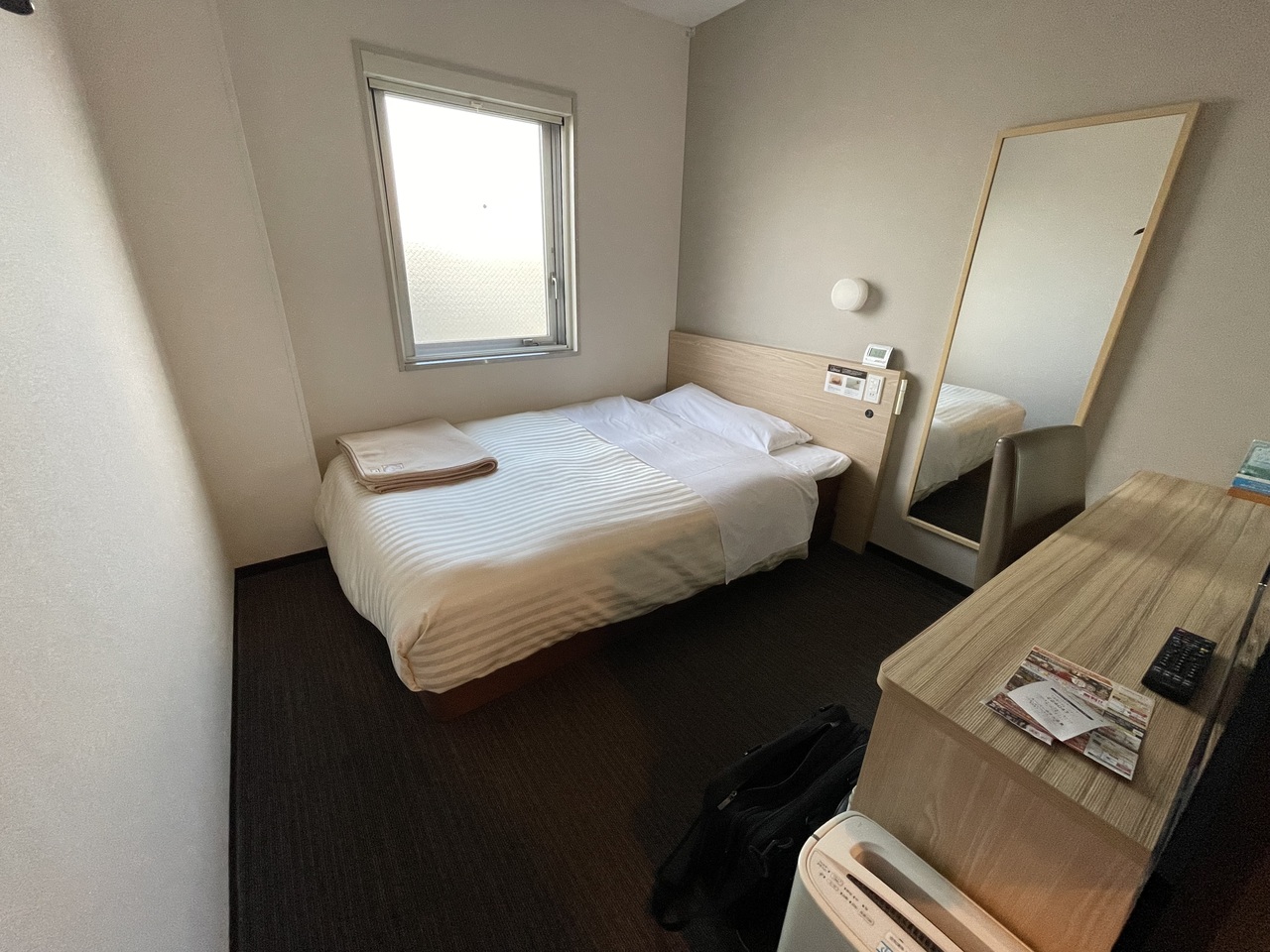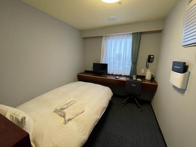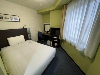 部屋は普通のビジネスホテルくらいでした。窓越しからJR線が見えます。