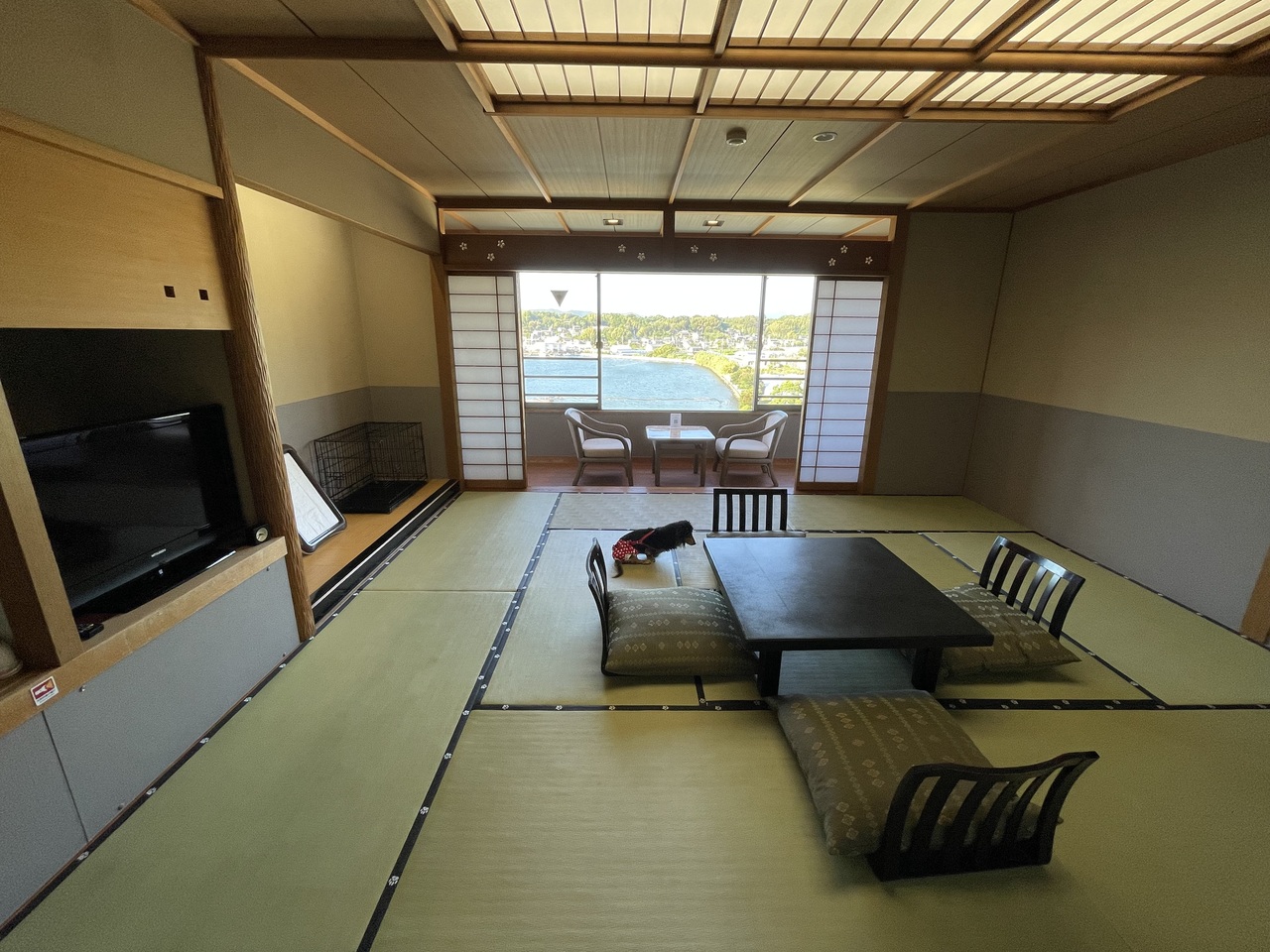 部屋食でペット同伴できるお宿です。となりの八の坊さんは一部プランのみなので犬連れにはありがたいです。お料理も美味しく、特にお刺身のツマの包丁の入れ方は素晴らしく感動しました。難点としてはお風呂に行く為に階段を3階分登らないと行けません。足腰が弱った方は無理だと思います。