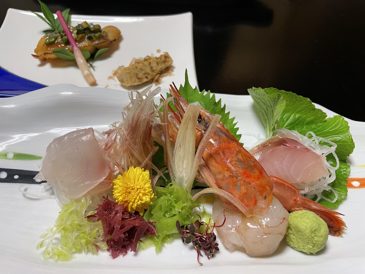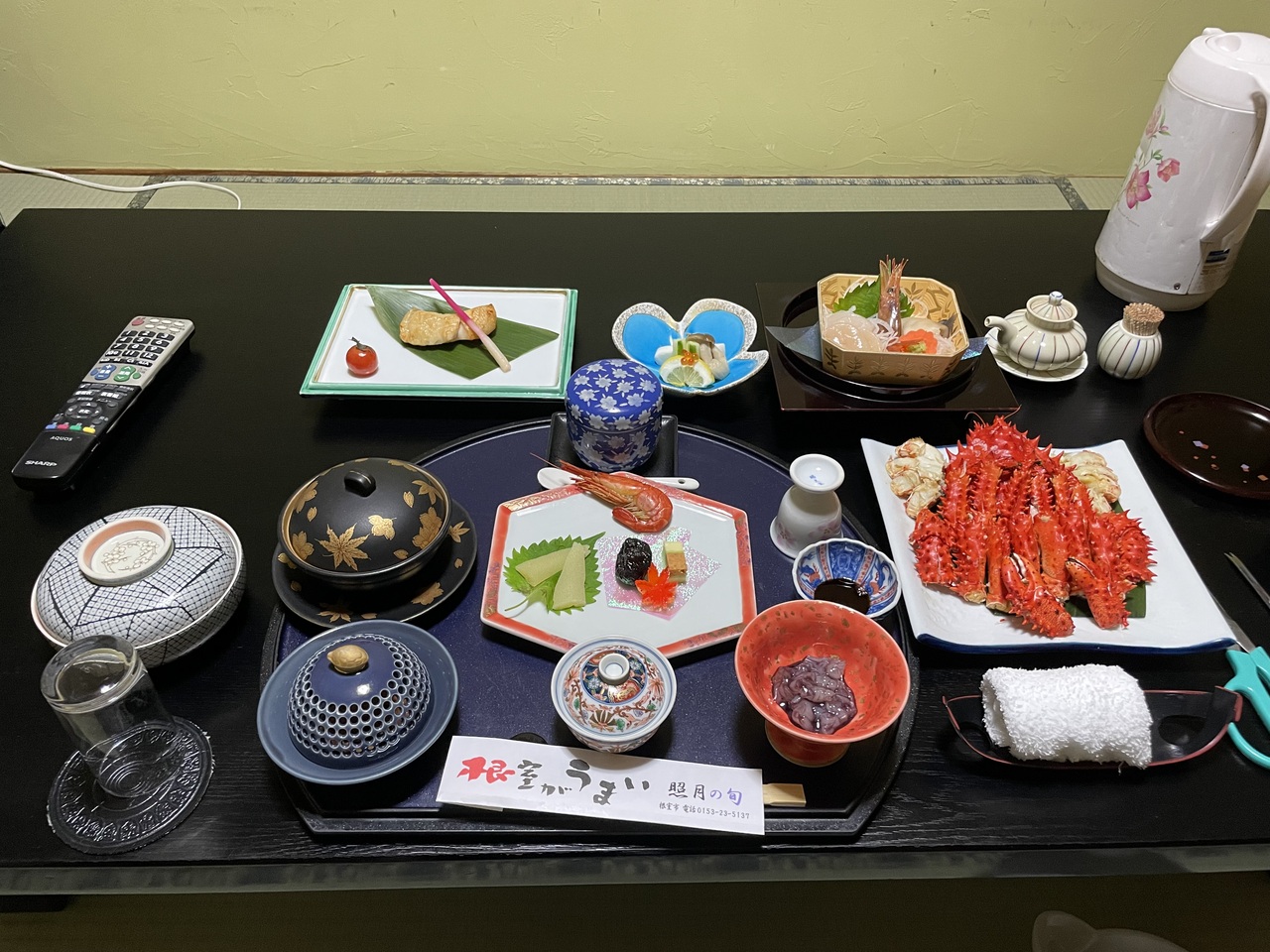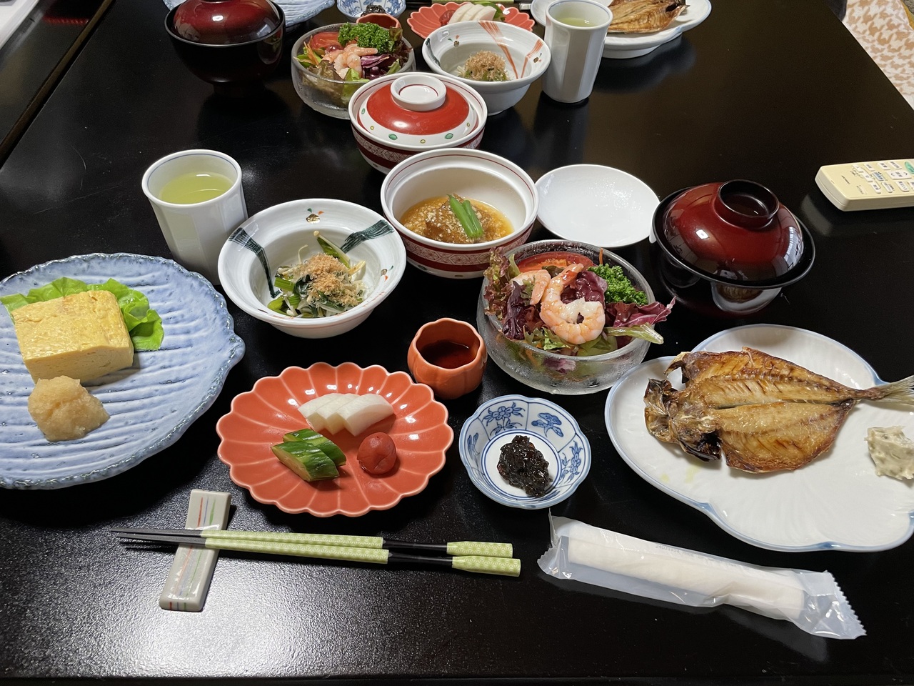お料理が有名な宿ですが、そのお料理を一品ごと支配人さんが説明してくれます。その魚を取るのは凄く大変だとか、硬くなるから食べる直前に調理するとかとても楽しい夕食をいただくことができました。夕食は部屋食でお酒は冷蔵庫に入っているので干渉されることなくゆっくりと食べることができます。朝ごはんは秋刀魚1匹の塩焼きと花咲ガニの鉄砲汁でこちらも美味しかったです。コースが3つあり、今回は真ん中のコースにしましたが、食べきれなかったので次回は一番安いやつでもいいかなと最後に思いました。