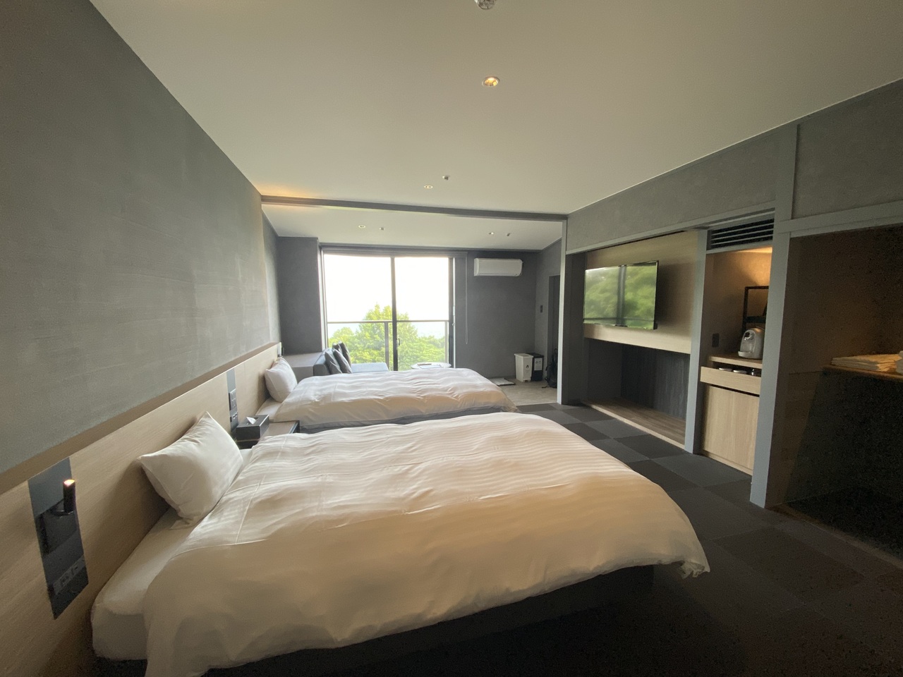 安いプランなのにツインの部屋にアップグレードしていただきました。ここは本当にアパホテルなのか?と疑いたくなる部屋。TKPがアパホテルにフランチャイズしているようです。