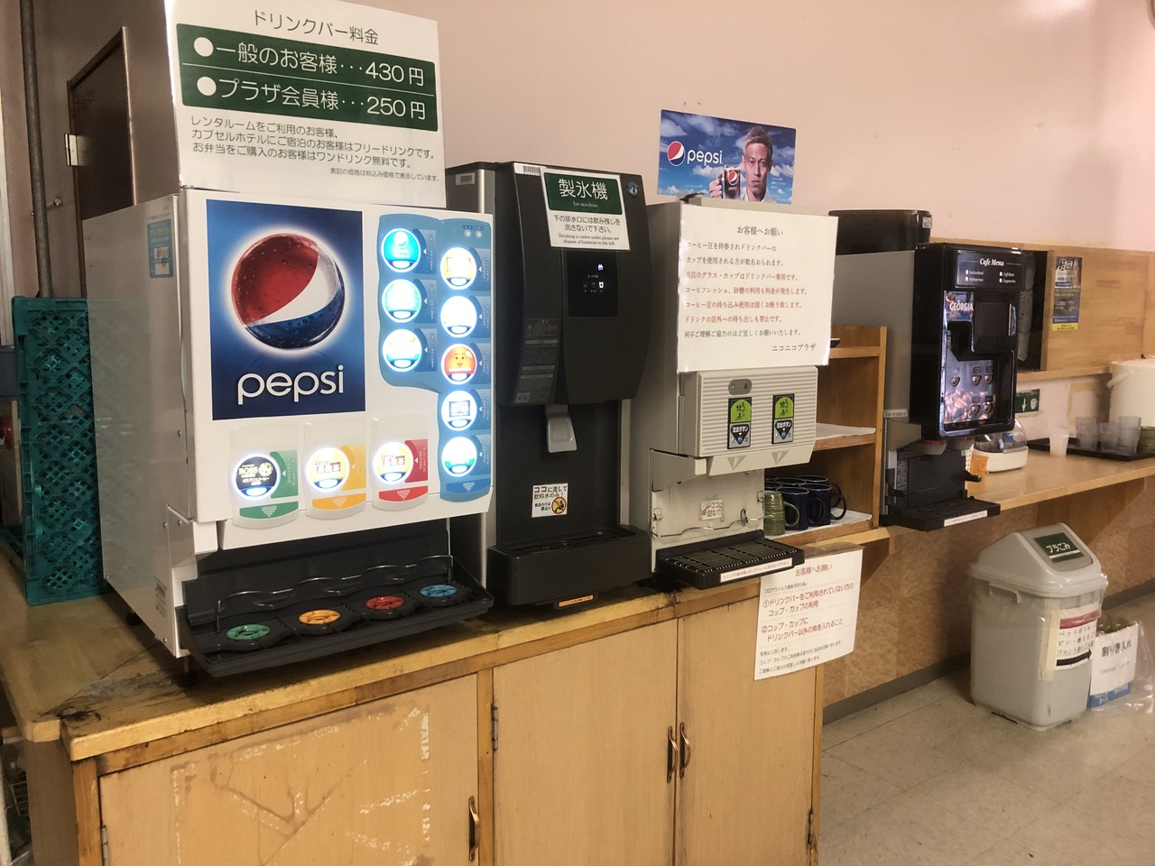 カプセルホテルのフロアは、インターネットカフェと共用になっており、フリードリンクや漫画を楽しむことができます。価格は据え置きになっているようなので値上げしなければ激安宿だと思います。