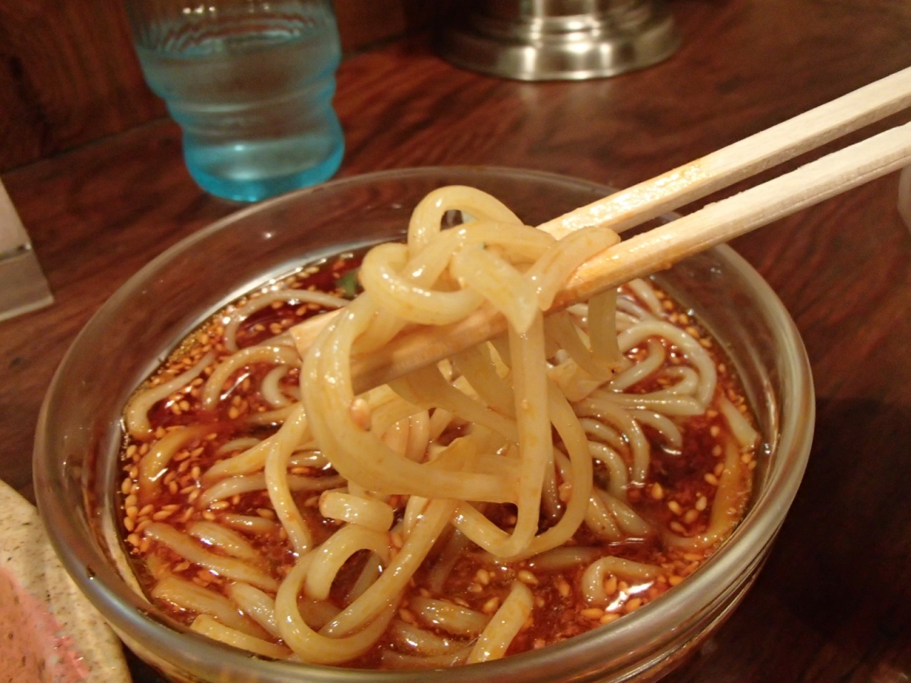 ばくだん屋の細い麺に対して、辛部は太めの麺。