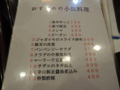 マーボ豆腐以外に中華の小皿料理があり、ビールのおつまみに注文、