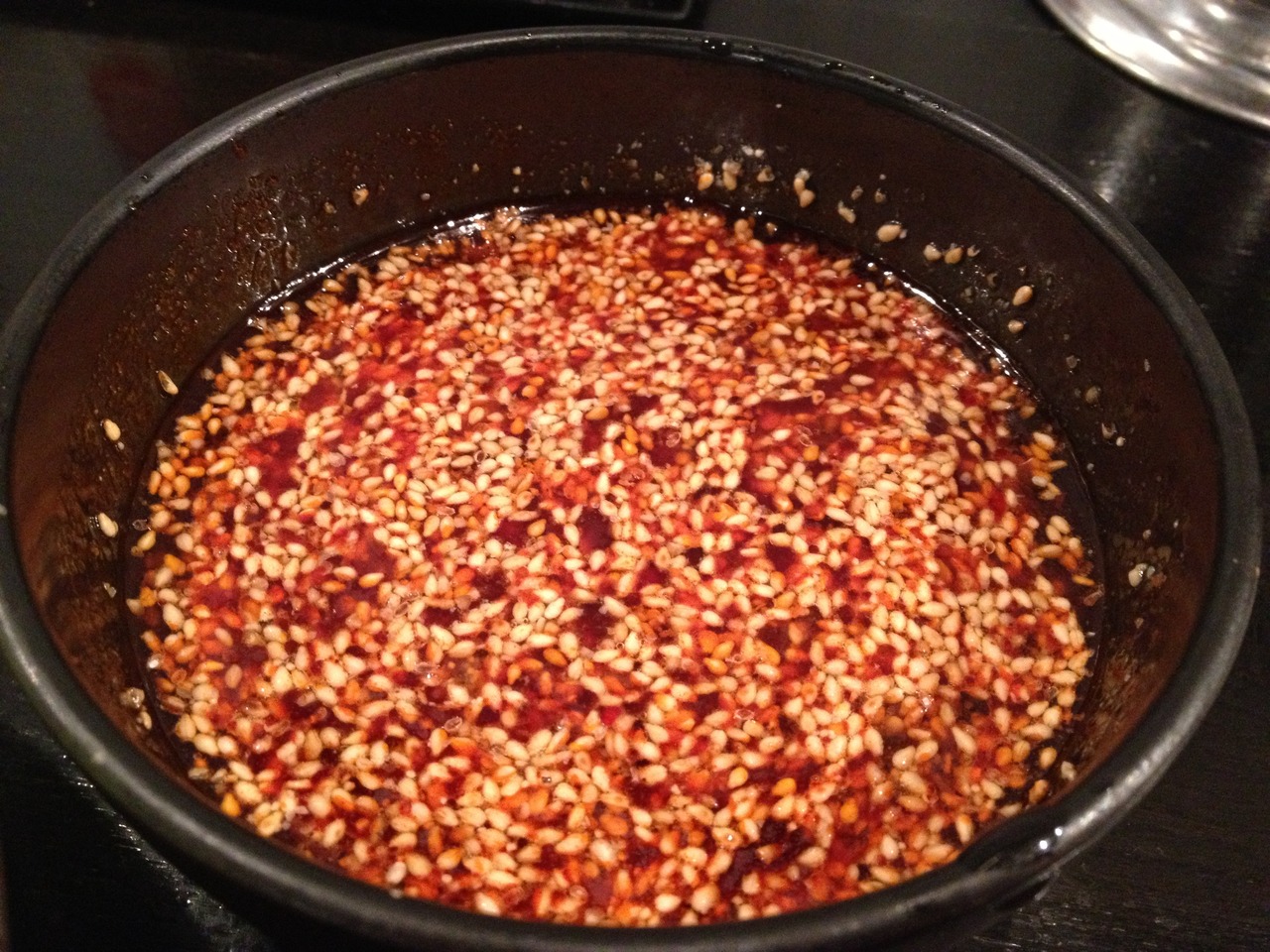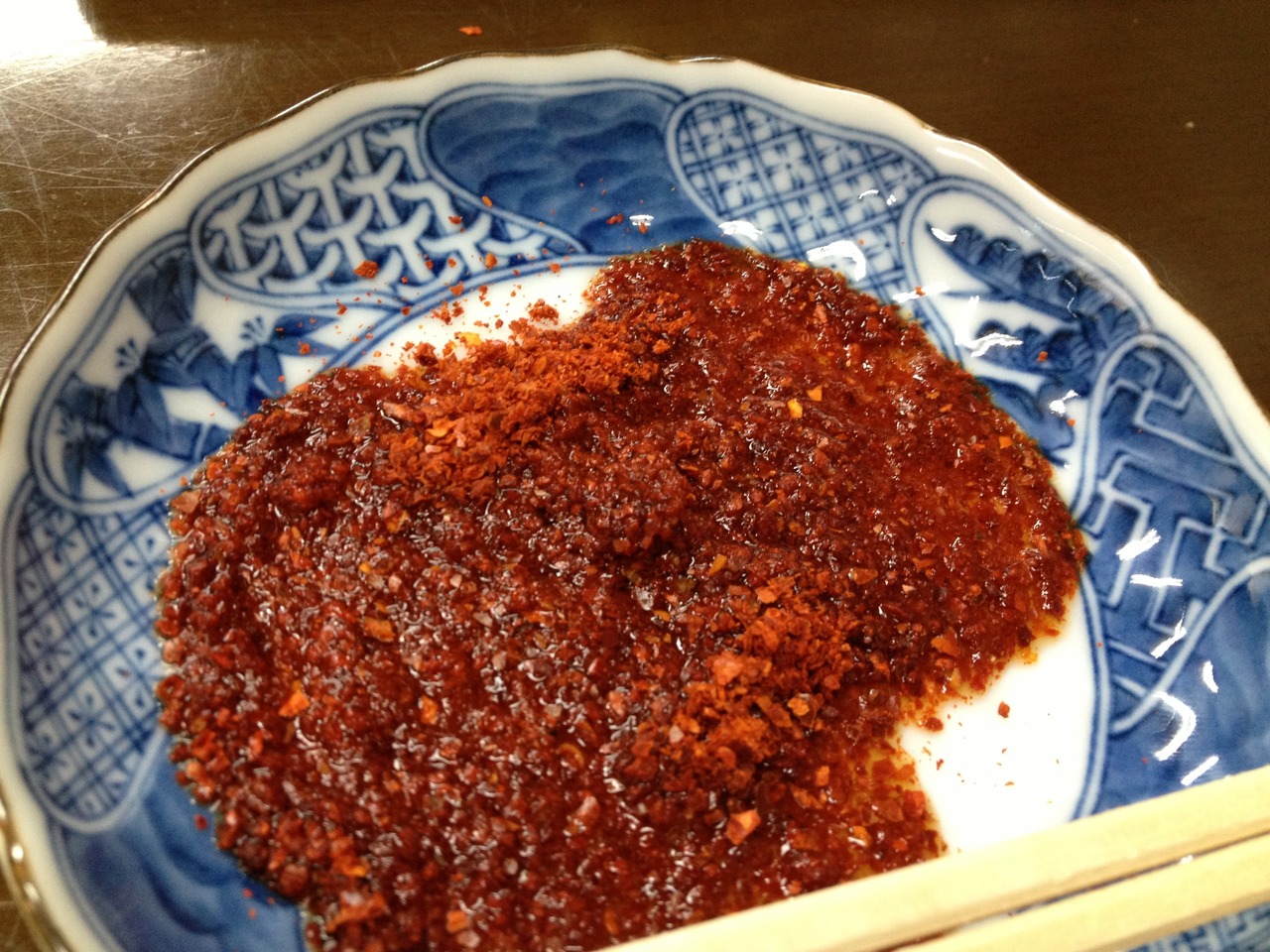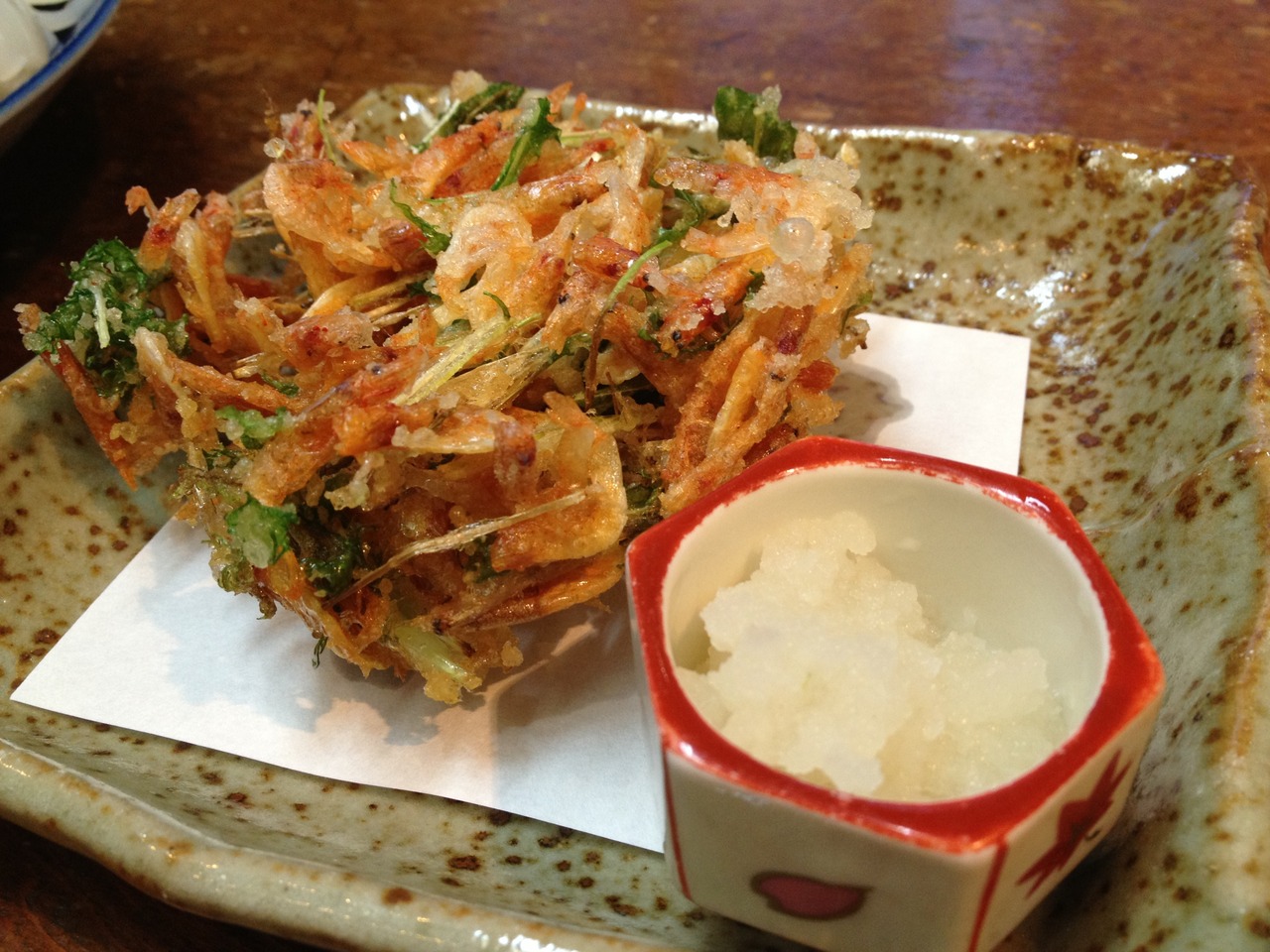 辛くない辛子とポン酢を混ぜて、ホルモン天につけて食べます。この辛子が絶妙に美味い。辛子だけ手に入れたいくらいです。