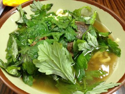 勝ってに思い込んで、よもぎそばをいただきました。