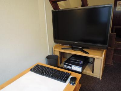 個室内には、大画面TV、ディスクトップパソコンがあり、至れり尽せり。