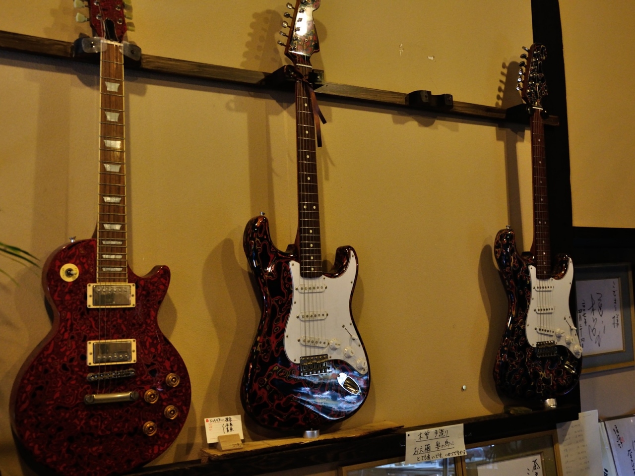 手作りのギターがあったり、飾りにこだわりがあったりと
