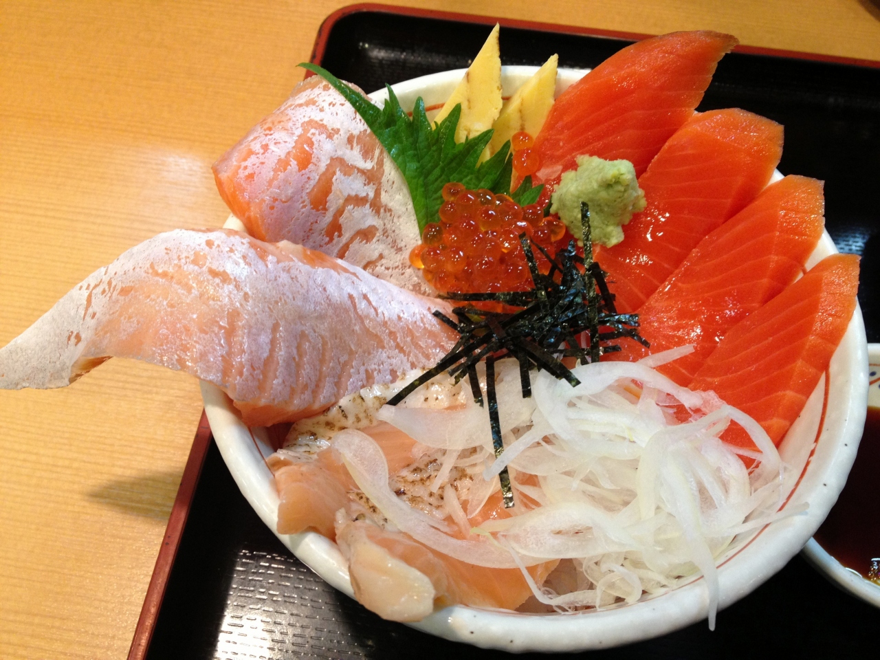 海鮮丼を食べるつもりでしたが、サーモンづくし丼に目が行ってしまい