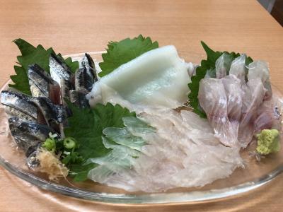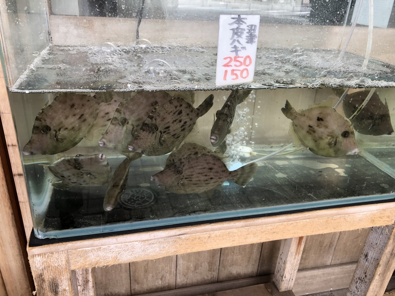 沼津で採れたジンドウイカ、カワハギ等を食べることができます。