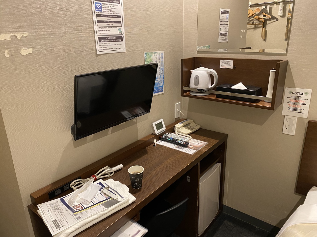 ホテルは普通のビジネスホテルですが、コーヒーが無料で飲めます。