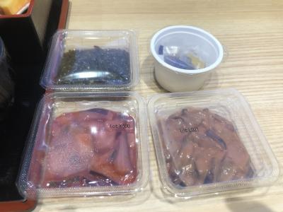朝食に小野万さんの商品「いかの塩辛」「子持ちめかぶ」等が置いてあり、ご飯がとても進みます。