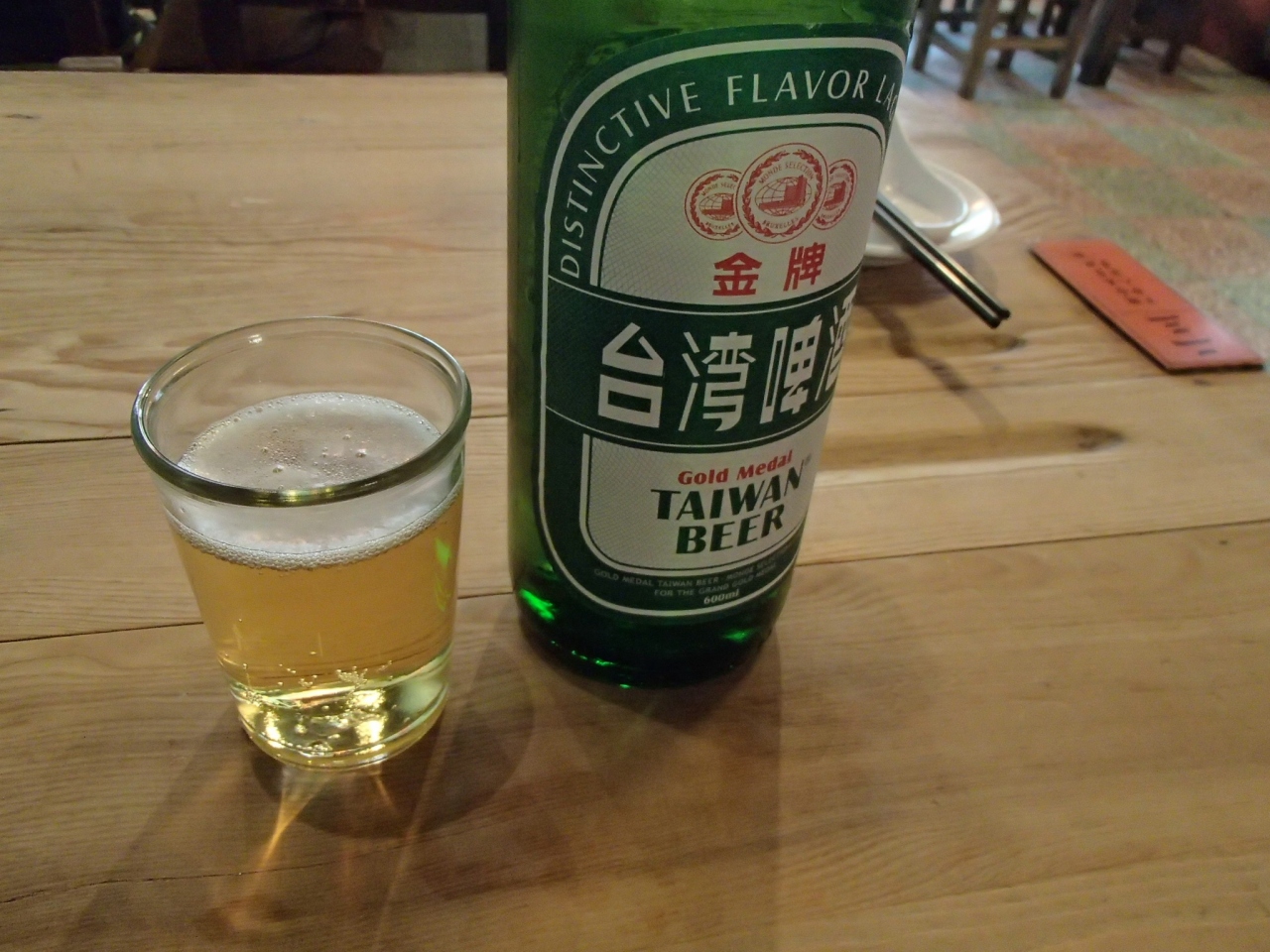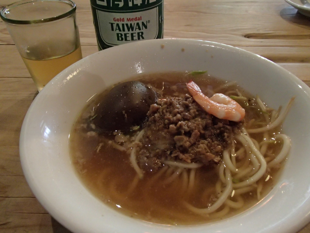 とりあえず席につき、担仔麺に魯蛋(味付けたまご)をトッピングし、ビールを頼みました。