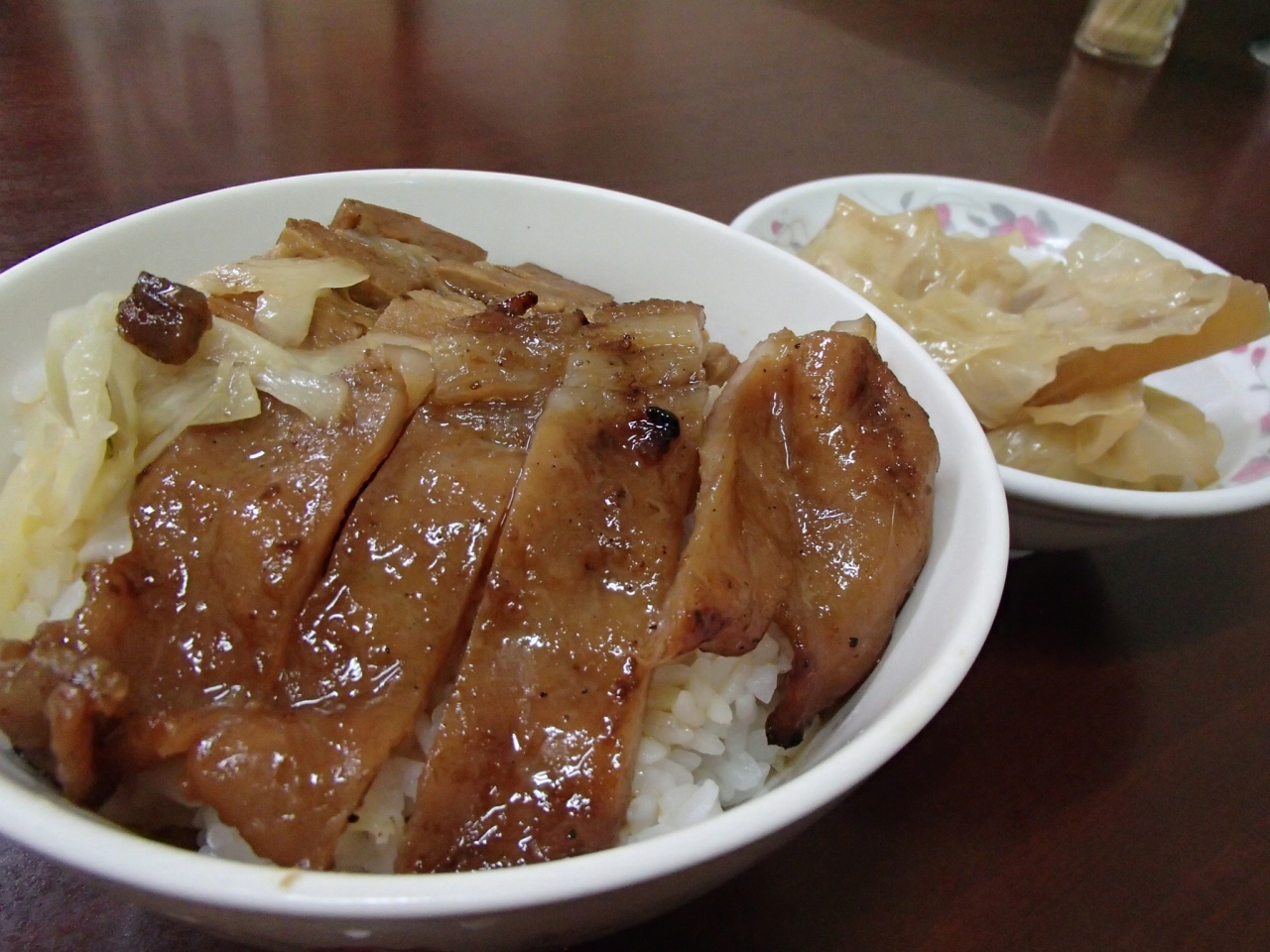 総合飯(焼肉飯と魯肉飯が半々)と蛤蜊湯、高麗菜(キャベツ)を頼んで120台湾元でした。