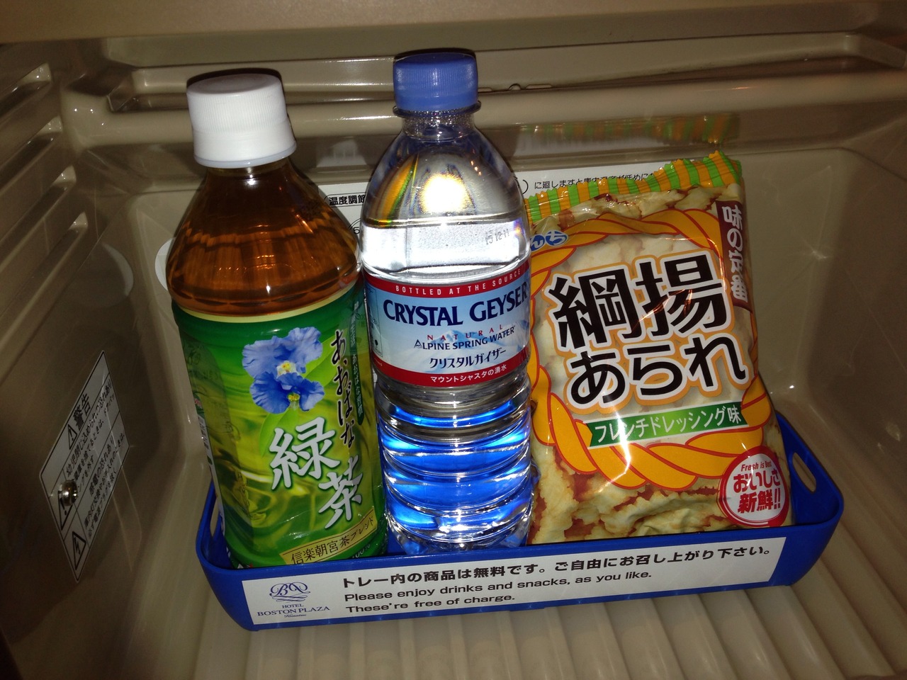 私が泊まったときは、緑茶とミネラルウオーター、お菓子の無料サービスが付いてきて、得した気分になりました。- 旅行時期