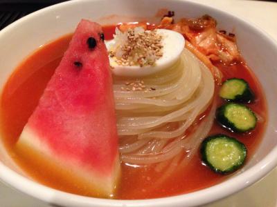 冷麺は焼肉の締めに食べるイメージがありましたが、一品として量があり、存在感のある脇役では無い一品でした。麺が太めでつるつる、辛さが選べ、キムチの別盛りが選べます。