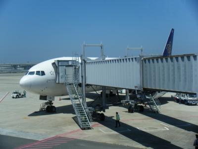 夏休みの関西国際空港。タイ国際航空のカウンターは、混雑しています。