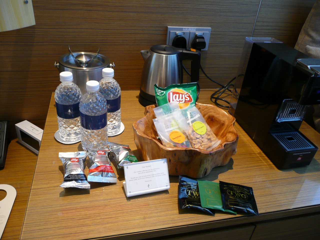 お水だけでなく、TWGの紅茶2種類とネスプレッソと炭酸飲料(コーラとダイエットコーラとスプライト)も3人分用意されていて、次の日もきちんと補充してくれました。冷蔵庫がついているので、コンビニで買ってきたビールを冷やせたのが便利でした。
