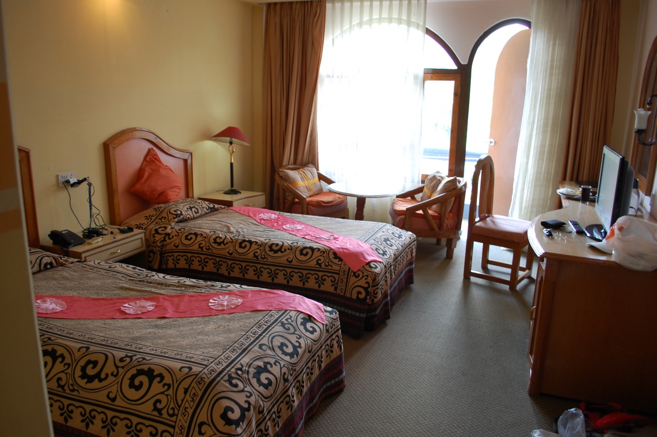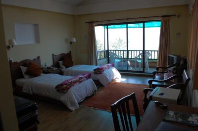 自分が泊まった部屋にはバルコニーがあり、お部屋からきれいなヒマラヤが見えたが、中国人団体客の泊まっていた部屋はヒマラヤが見えない位置にあった。ただヒマラヤが見えない部屋であってもホテルの屋上に行けばヒマラヤが見える。